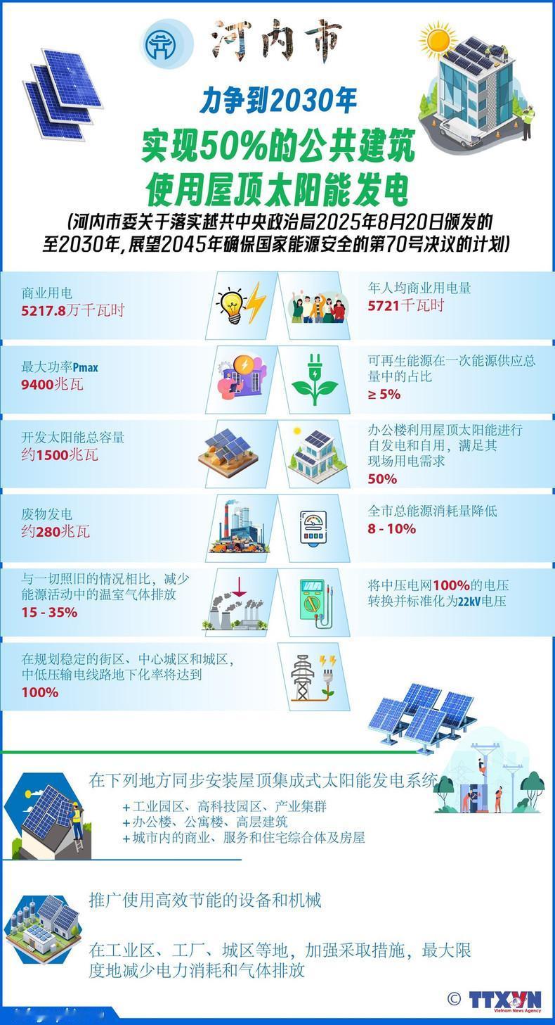 越南为了节省电力也是拼了! 近日,越南首都河内市发布未来5年电力规划,其中提到河内市力争到2030年实现50%的公共建筑使用太阳能发电,以达到减少对传统电力供应的依赖。根据这项规划,河内市要发展约1500兆瓦的太阳能发电装机容量,才能满足需求。