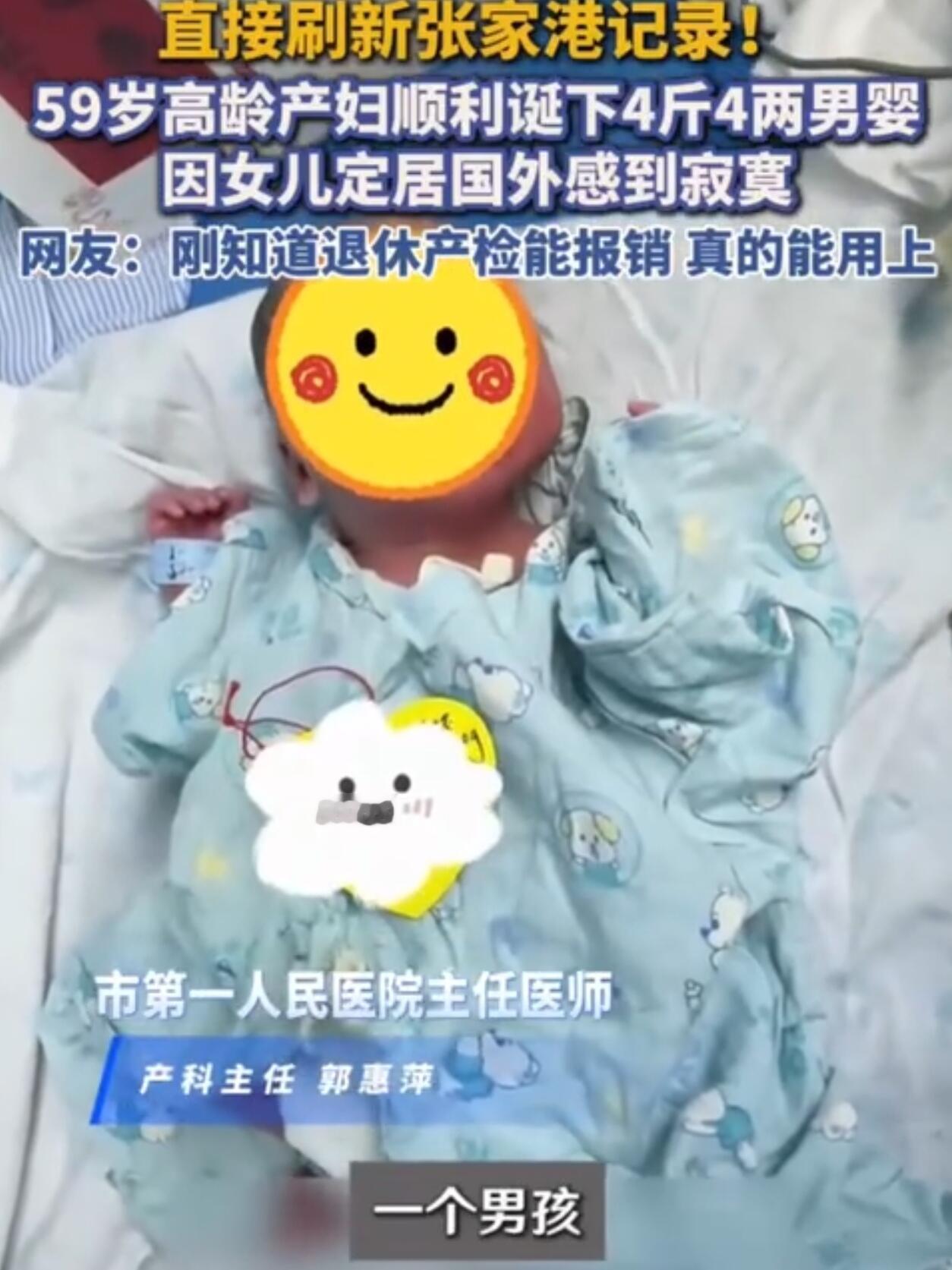 59岁的邹女士在张家港市第一人民医院生了儿子,一下子就成了当地的热门话题。她这也
