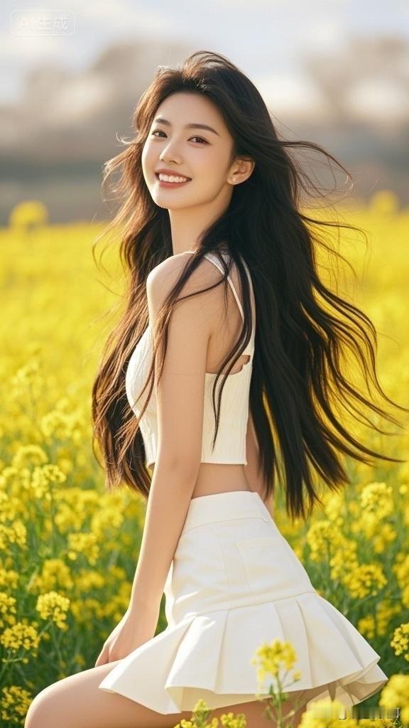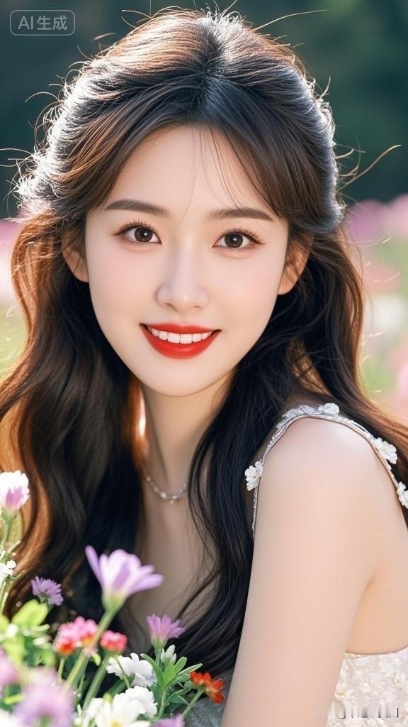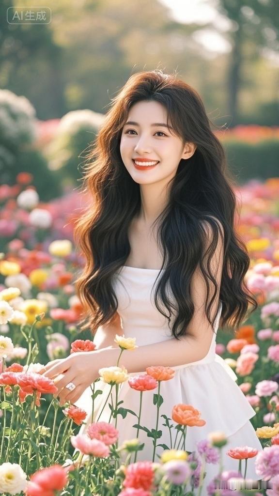 阳光下的花海,笑靥如花的她