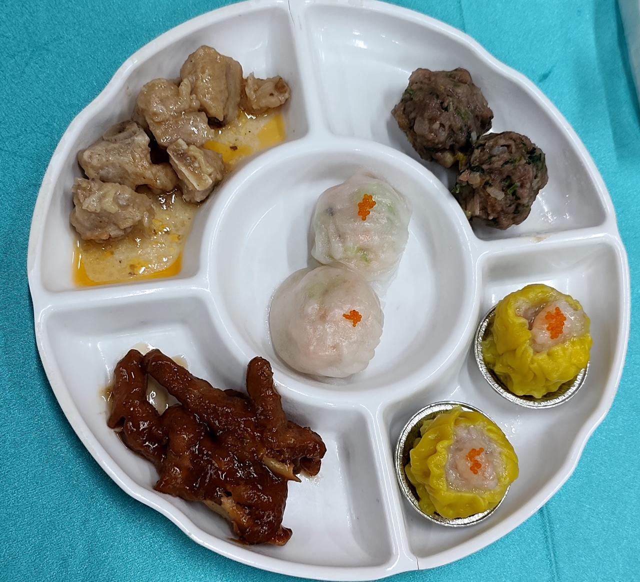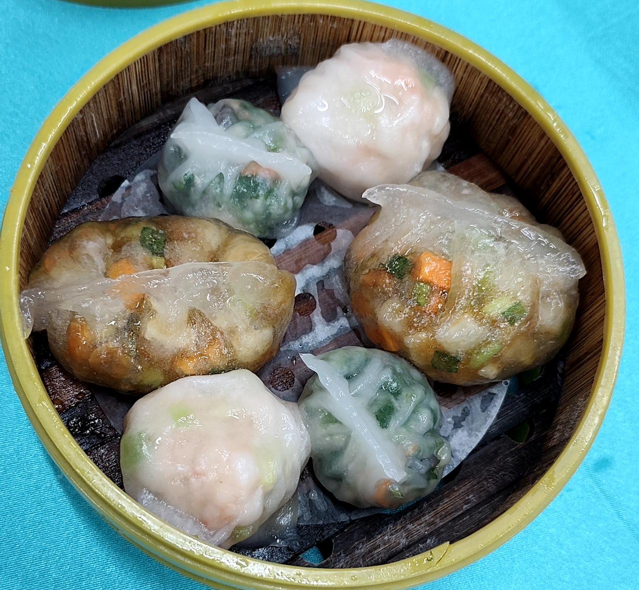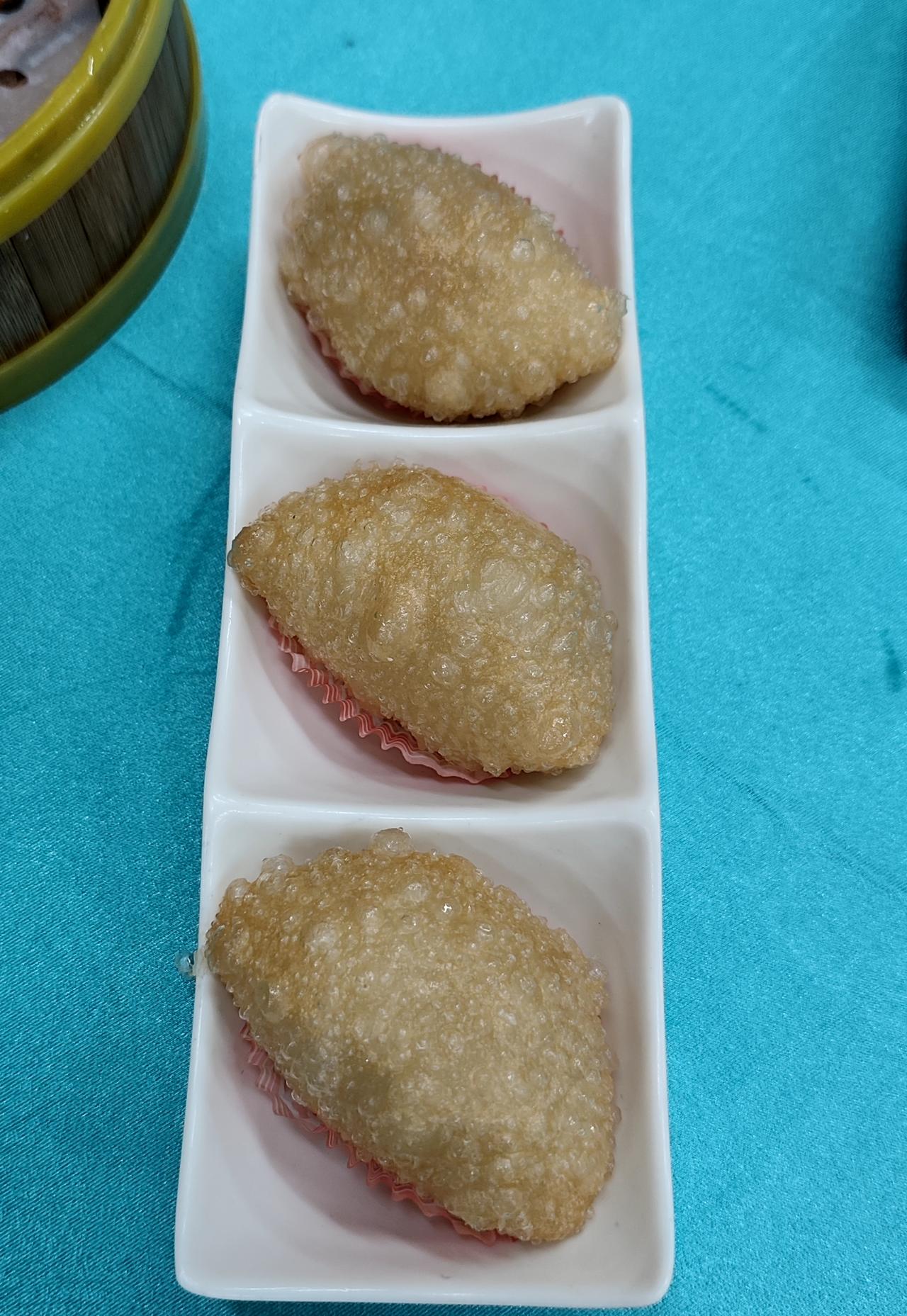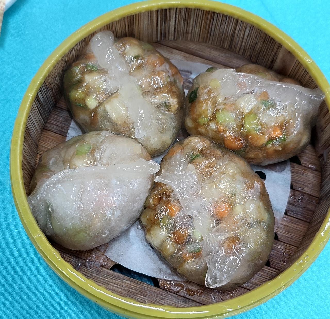 昨天晚上旧同事在微信群里约今天早上八点饮早茶,原本是三个人的,但今天早上其中一个人带孙和老公过来,所以就变成了5个人,我8点就到了,另外一个也到了,带孙和老公过来的人迟点到,叫我先点几个点心,点一大碗粥给她的孙食一小碗就够了,其他都是我点的,今天我就想介绍一下广东不同地方的美食,首先是潮州的粉粿,皮是透明的,软一点的,里面的馅料是切粒的,有芹菜梗切粒,我是不喜欢吃芹菜梗的,其他馅料还可以,一份是4只,不够5个人食,我就点多一份三拼,咸水角是广东哪里的美食我不记得了,咸水角是用糯米粉做皮的,是用油炸的,里面有肉的,但我没有食,一份只有三件,有两个人唔食,我是喜欢食萝卜糕,还有广州饮早茶的代表虾饺皇,广州的虾饺皇也是白色的皮,不是用面粉做的皮,五拼有凤爪,排骨,牛肉丸,虾饺皇,烧买,因为还有一个男人,他说喜欢食大包,点了四个大包,五个人点了这么多就够食了。
