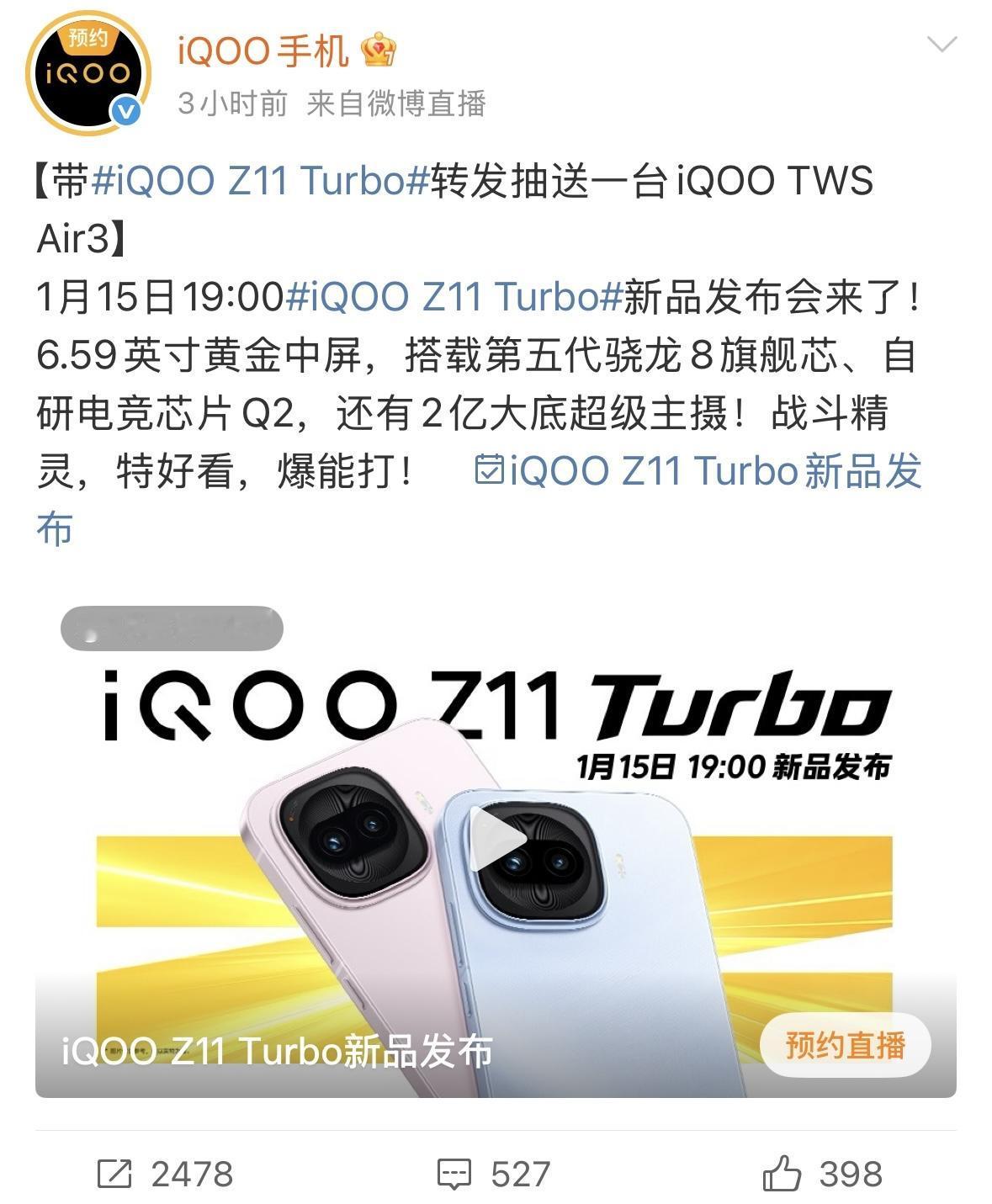 iQOO Z11 Turbo发布会,明天晚上7点,核心参数有:第五代骁龙8,2亿像素主摄,6.59英寸屏幕~~ 卖多少钱起步比较合适呢?[吃瓜群众]前3猜对价格送红包,已经定好了闹钟