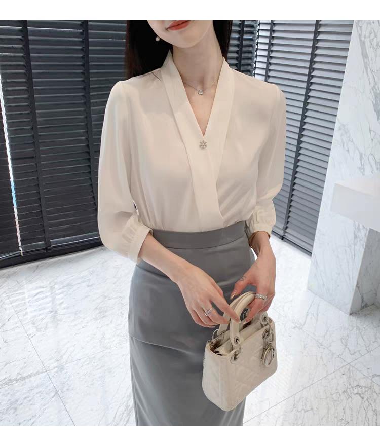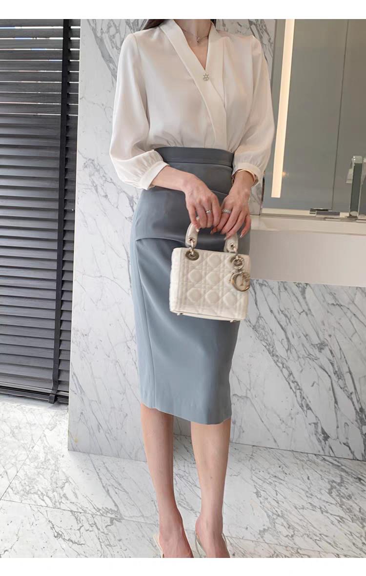 长袖V领衬衫+包臀半身裙!气场十足,气质优雅!满满的地气感。半身裙衬衣穿搭 每日穿搭