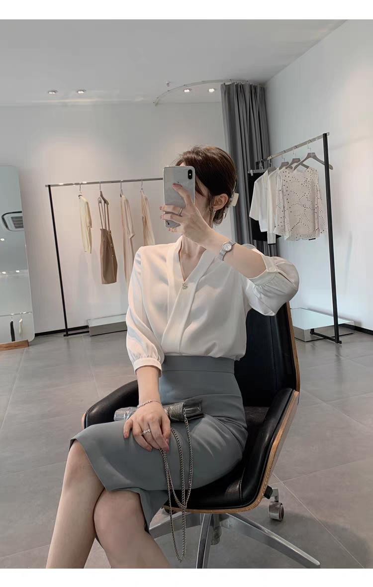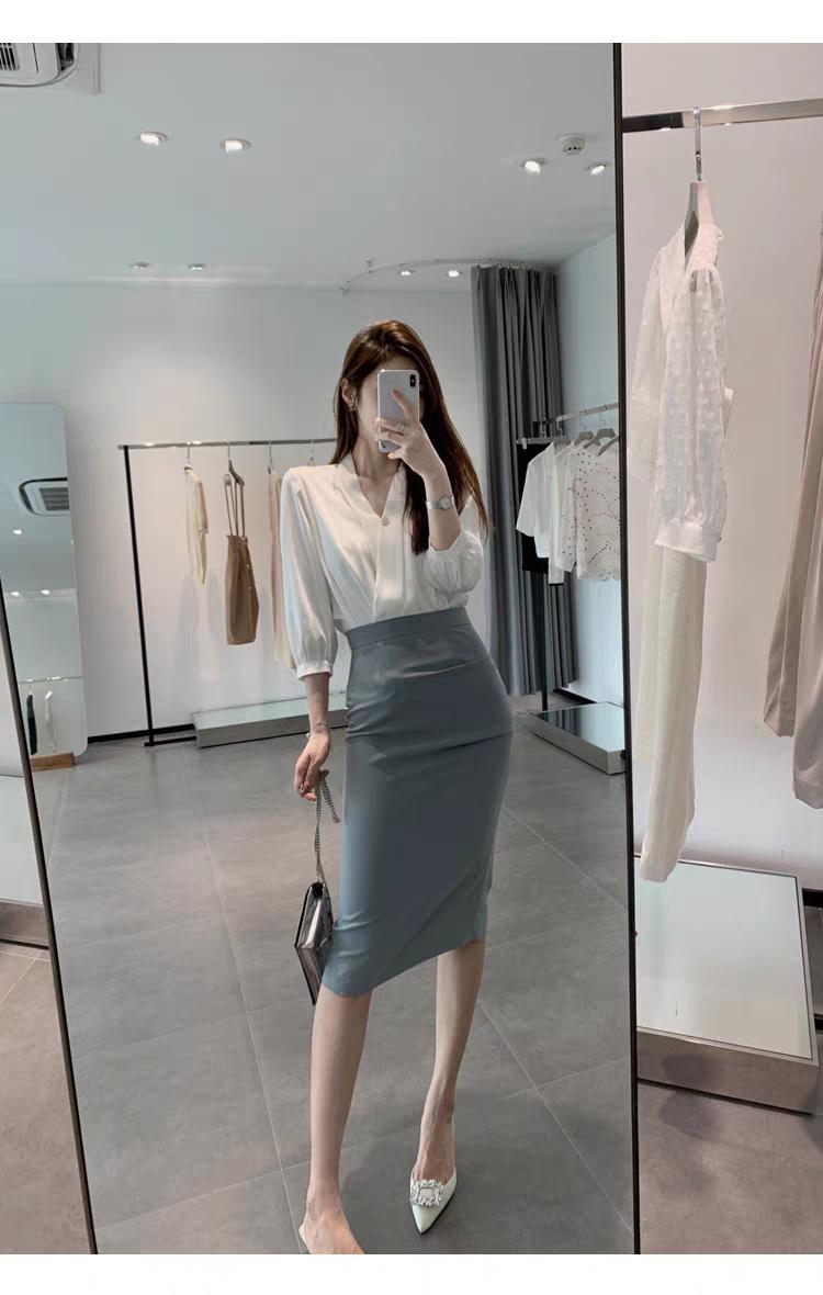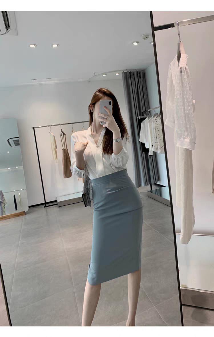 长袖V领衬衫+包臀半身裙!气场十足,气质优雅!满满的地气感。半身裙衬衣穿搭 每日