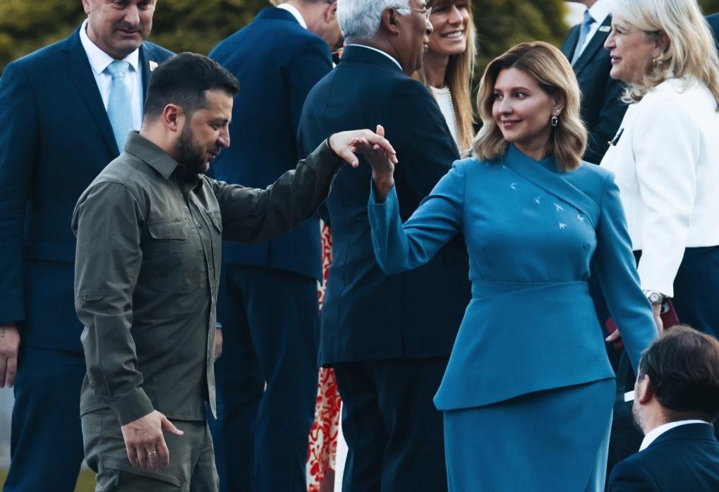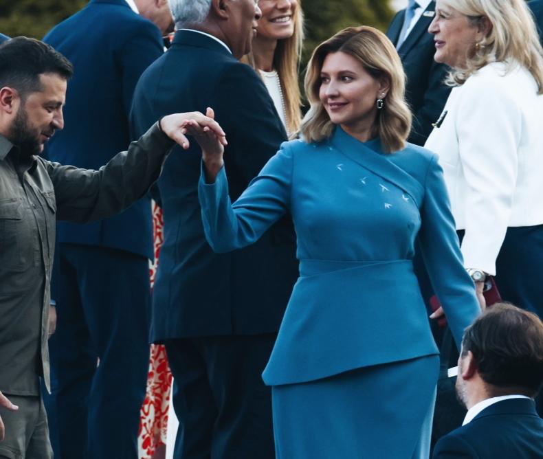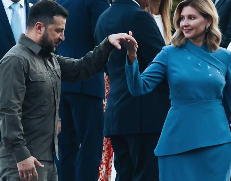 泽连斯基和妻子叶莲娜牵手的姿势,是想要跳一段舞吗? 叶莲娜看向泽连斯基的眼神是在传递什么呢? 现场其他人在互相聊天,他们夫妻二人是在自娱自乐吗?