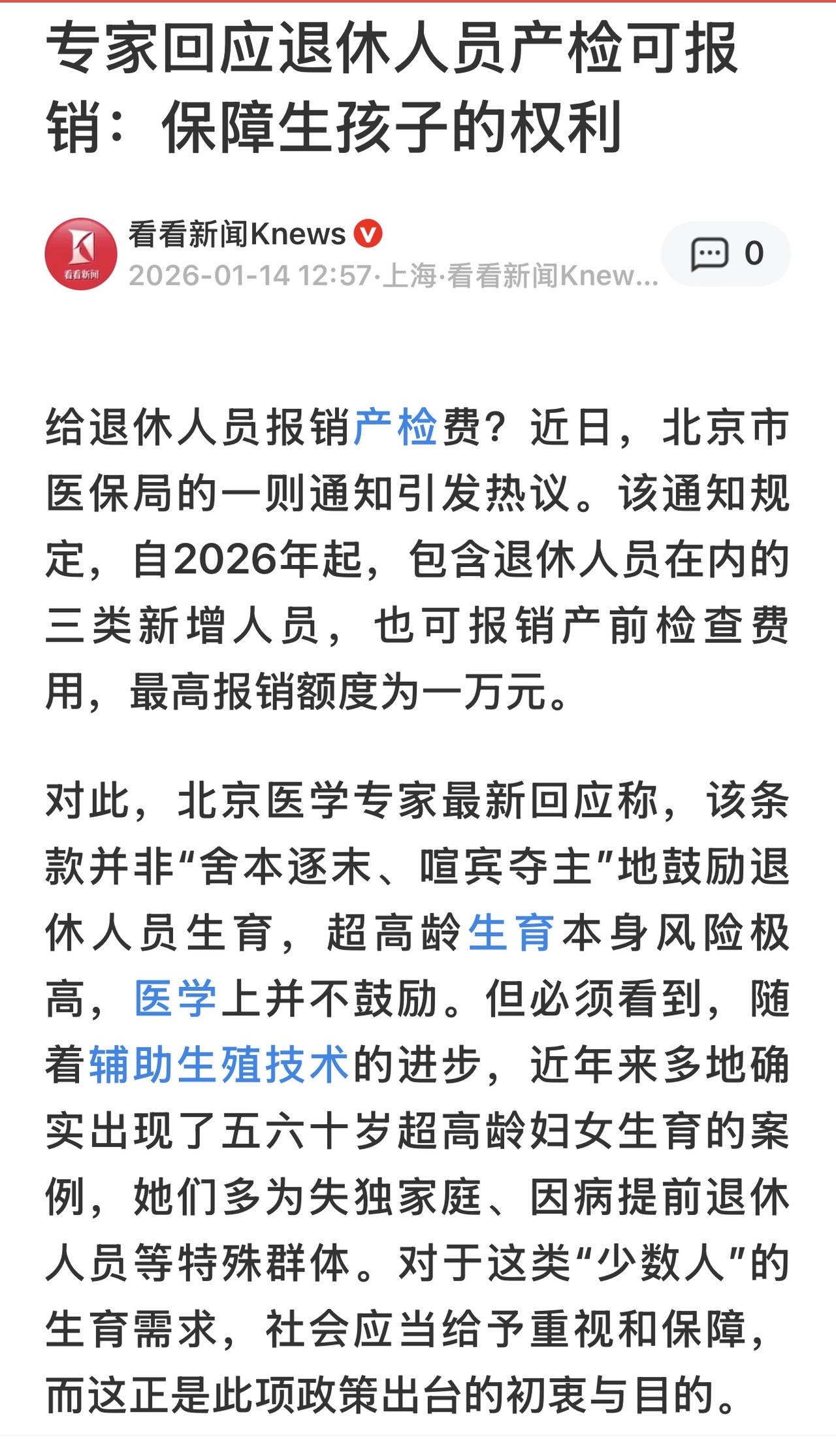 网民质疑,该政策反映出“年轻人生育意愿低,便转向关注老年群体”。对此专家重申,政策核心在于保障生育权,而非鼓励老年人生育。 关于退休人员的生育条件,即便存在也属极少数情况。有观点认为,此类情况是否值得在政策文件中单独列出,仍有讨论空间。
