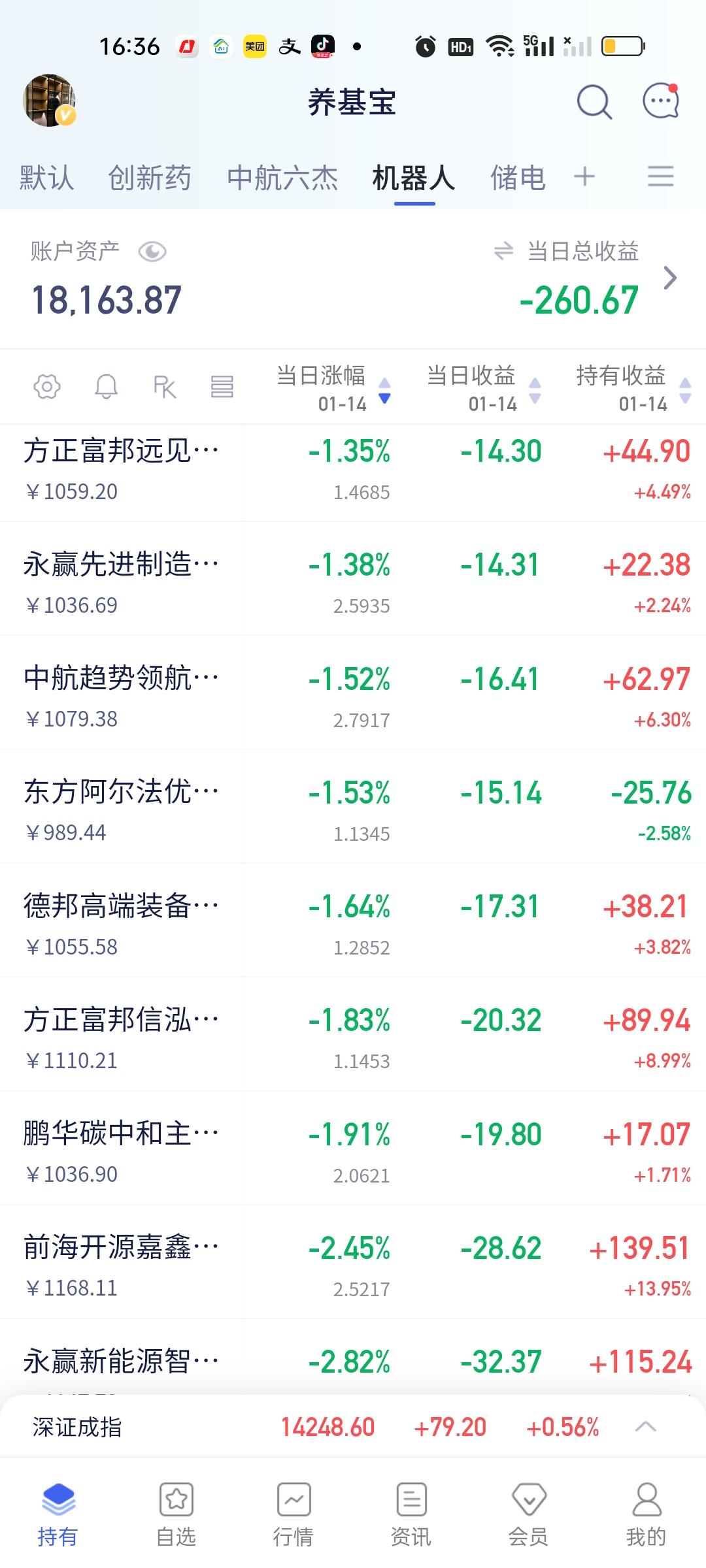 今天涨得最好的是国投瑞银白银期货,金融科技以及最近这段时间涨得非常不错的AI应用和云计算,人工智能。机器人今天跌幅比较大。上午机器人还是红的,下午直接緑了,另外房地产的跌幅也在2%以上,这个跌幅不算小了,因为房地产一直没怎么涨过。晚上还有一个看点,看稳盈怎么开。目前预估涨2%。