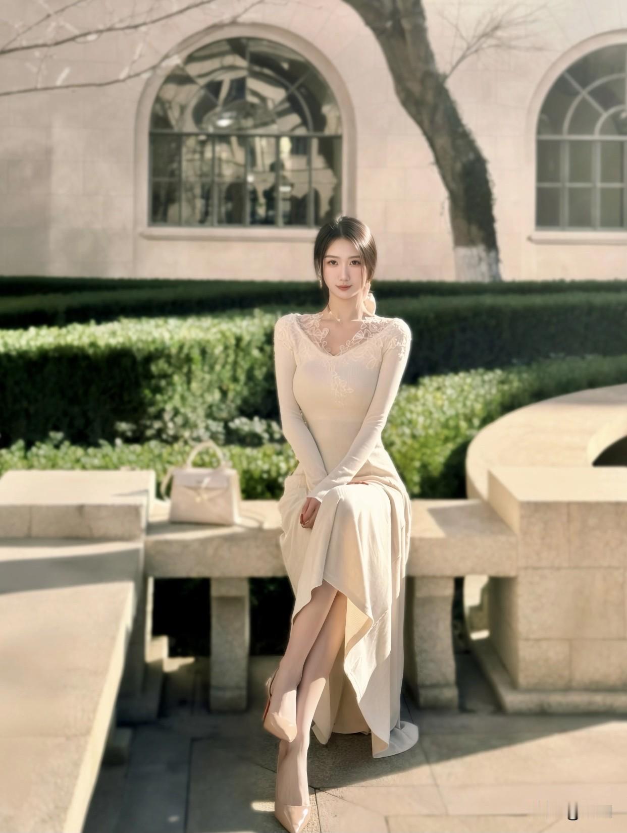 魅力街拍一起分享优雅白裙,静谧花园,唯美时光