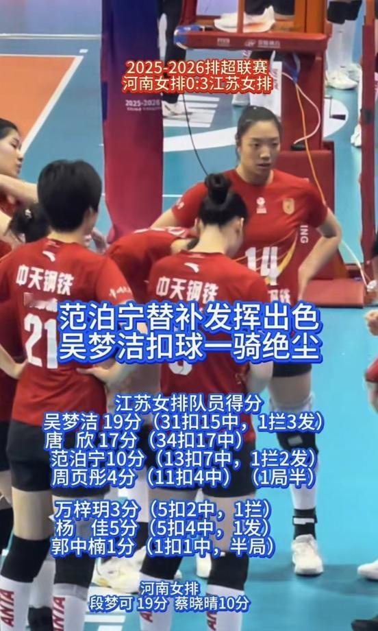 张常宁退役第6天,江苏输了,记分牌定格在22-25的那一刻,江苏队替补席上的姑娘们把手搭在队友肩上,没人哭但都低着头。 三天前还挂着"全华班卫冕冠军"横幅的训练馆,此刻被上海队外援的庆祝声压得有些闷。 这场全国女排联赛揭幕战,成了张常宁脱下球衣后江苏队的第一次大考,上海队的古巴外援洛雷娜第三局连扣8分的时候,镜头扫到江苏队主教练施海荣攥着战术板的指节发白。 这位带出过奥运冠军的教头,本场派上的首发阵容平均年龄23岁,其中三个是第一次打联赛主力。 当对方外援用一记暴力扣杀把比分拉开到15-9时,江苏队自由人臧倩倩扑出去救球,膝盖在地板上蹭出刺耳的声响。 吴梦洁在赛后冰敷室里把右腿架在凳上,护膝拆到一半停住了,这个刚满21岁的主攻手本场拿到19分,最后那个被拦死的探头球让她至今攥着拳头。 2021年全运会青年组决赛,她打封闭上场率队夺冠,赛后在医务室吐了半小时;去年世联赛香港站,她扣球落地时脚踝外翻90度,被队医背下场时还攥着战术板。 张常宁坐在转播席第三排,镜头没拍到她悄悄按揉右膝的动作,2018年雅加达亚运会前夕,她在训练中十字韧带撕裂,打着固定架看完队友夺冠;东京奥运会后那两次手术,让她的膝盖里多了七颗钢钉。 今年元旦联赛那场关键战,她扣球落地时打滑摔倒,队医往她膝盖敷冰袋的工夫,她已经在研究下一轮对手的录像。 技术统计显示上海队外援得分占比超过60%,但江苏队的拦网次数比对手多12次。 当吴梦洁带伤完成最后一记后排攻时,场边观众自发亮起手机闪光灯,这个画面让张常宁想起2019年世界杯夺冠夜,当时朱婷也是这样带伤打满五局,赛后全队把金牌挂在了队医脖子上。 赛后新闻发布会上,施海荣提到"年轻队员拼到了最后一口气"时,门外传来球迷的喊声:"吴梦洁,好样的!"此刻训练馆走廊里,吴梦洁正帮队友贴肌效贴,她的护膝还放在旁边的长椅上,上面沾着今天的汗水和地板胶痕迹。 那些留在赛场上的汗水和护膝上的胶痕,或许比比分牌更能说明竞技体育的模样。 当外援的重金合同成为联赛常态,江苏队这群年轻人用缠着绷带的手指互相击掌的画面,让我们想起体育最初的样子不是为了赢而战,是明知难赢也要把每一分拼到底。