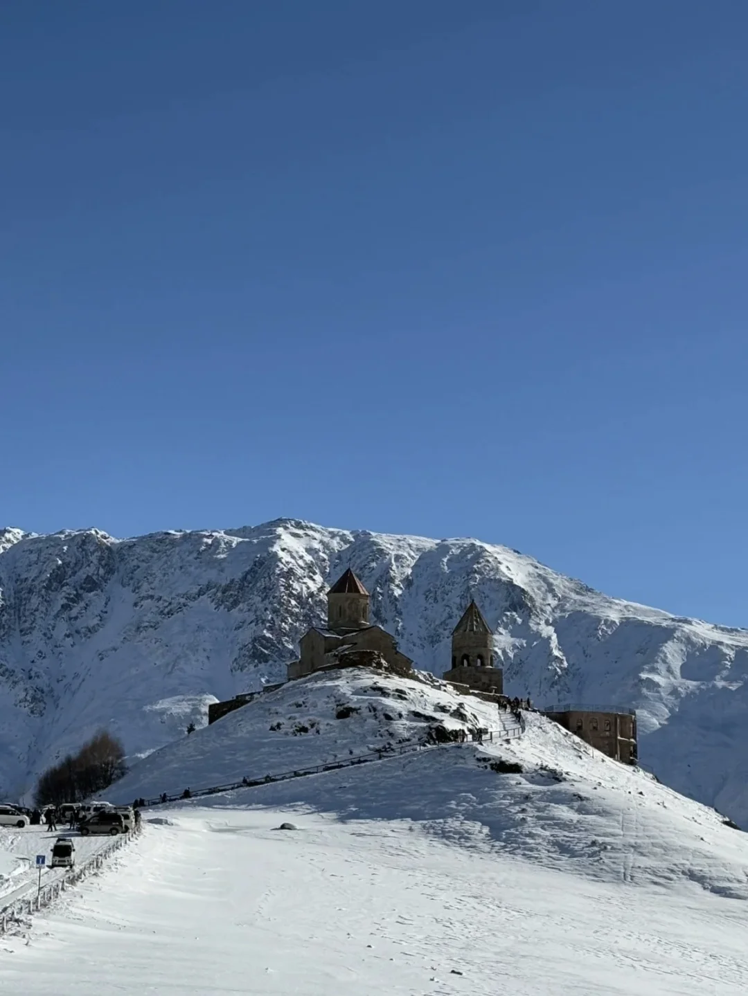 5️⃣卡兹别克圣三一教堂上面很冷风很大,带好抗风的帽子外套