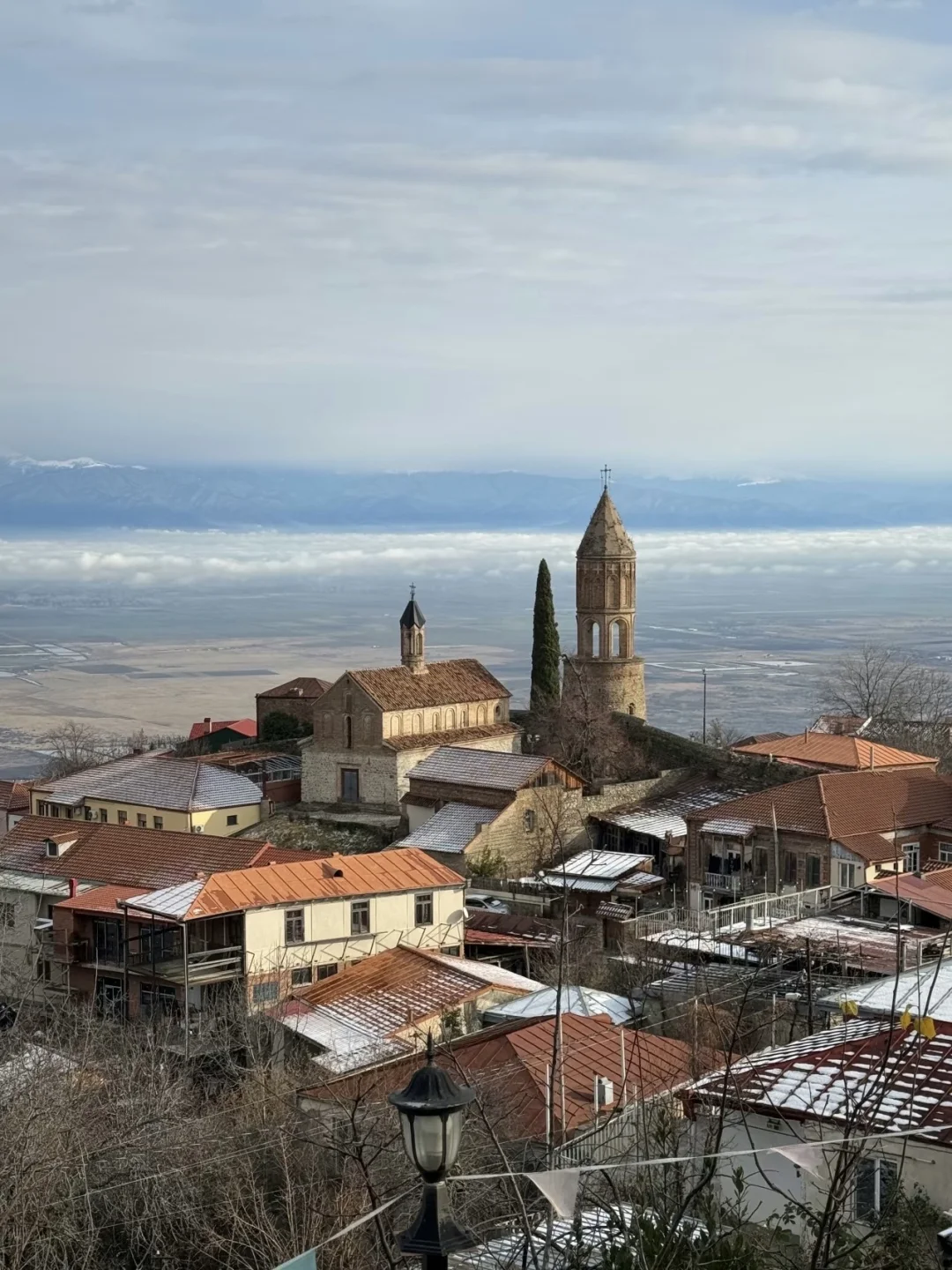 📍内陆-第比利斯,西格纳吉:1-2月的平均气温约为4-7℃,一件毛衣+羽绒服了,两层就可以了,怕冷的南方人可以多穿一件保暖内衣