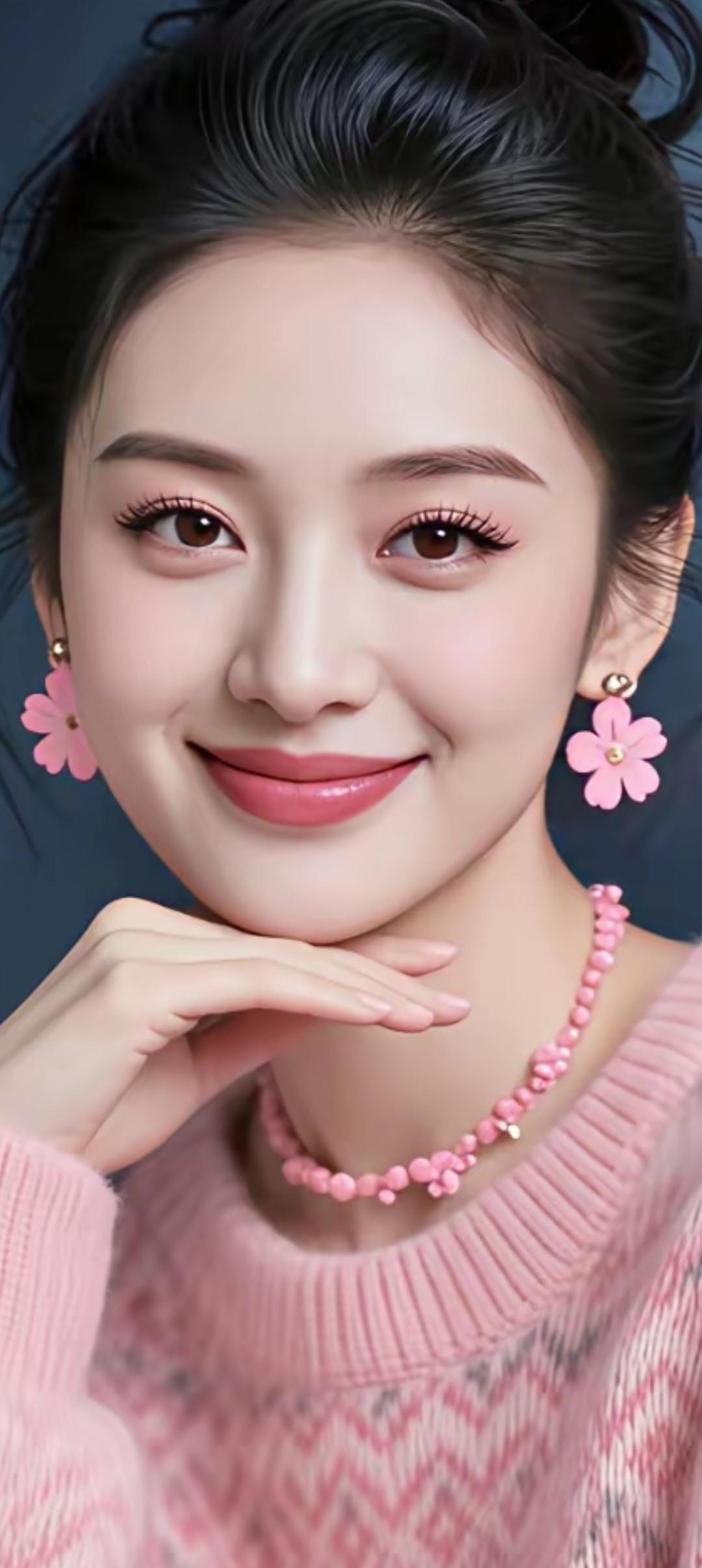 甜美粉嫩少女心,粉色毛衣与花饰耳环的完美搭配,温柔微笑,元气满满!🌸💖