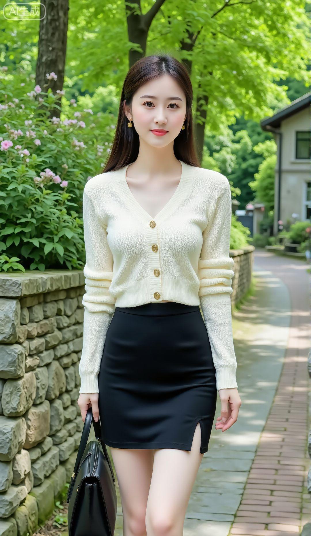 清新自然,优雅迷人,白色毛衣搭配黑色短裙,完美展现都市女性魅力。