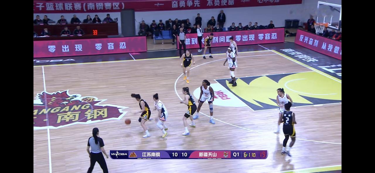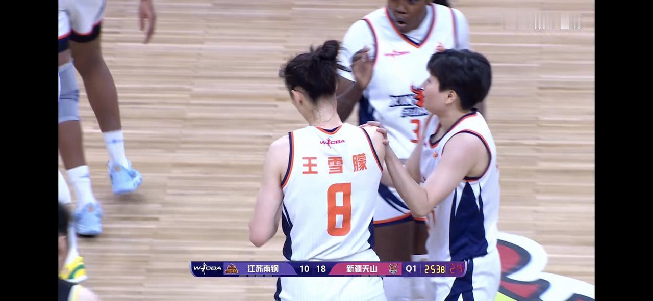 江苏女篮今晚防守不如新疆女篮 半场的比分是31:36 第一节,原本是江苏女篮领