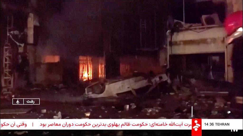 现场触目惊心! 伊朗媒体播放的现场画面显示,伊斯法罕的车辆被烧毁,拉什特的建筑楼