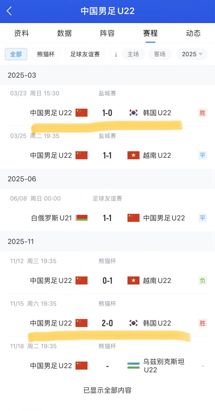 韩媒还指出,这支U23中国队在去年曾两度战胜韩国队。
