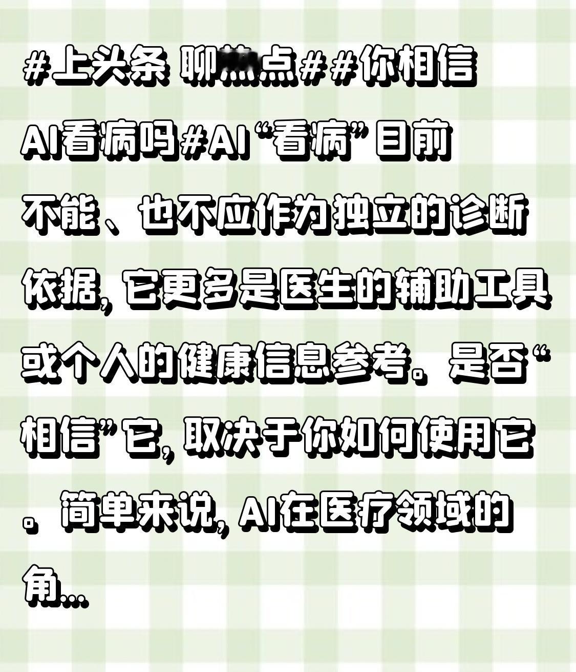 简单来说,AI在医疗领域的角色具有两面性,它既是潜力巨大的“超级助手”,也存在不可忽视的局限和风险。 一方面,AI能快速分析海量病历数据、识别影像异常,甚至在某些特定疾病筛查中超越人类医生的准确率,显著提升诊疗效率,缓解医疗资源紧张。例如,在糖尿病视网膜病变或早期肺癌的影像判断中,AI已展现出强大的辅助价值。 另一方面,AI缺乏临床经验、共情能力和整体判断力,无法理解患者情绪、社会背景和复杂病史之间的关联,容易因数据偏差或模型过拟合导致误判。 更令人担忧的是,公众可能因对技术过度信任而延误正规就医,或因误读AI建议产生“网络疑病症”。因此,理想的使用方式是将AI置于“医生主导、AI辅助”的框架下,作为初筛、提醒和知识支持的工具,而非决策者。未来,随着监管体系完善和模型透明度提升,AI有望在标准化、流程化的医疗环节中承担更多任务,但医生的临床判断与人文关怀,仍将是医疗核心不可替代的部分。 总而言之,对待AI医疗,正确的态度是“利用,但不依赖;参考,但不盲从”。AI是提升医疗效率和普惠性的有力工具,但目前它的最佳位置是医生的“助手”,而非患者的“医生”。