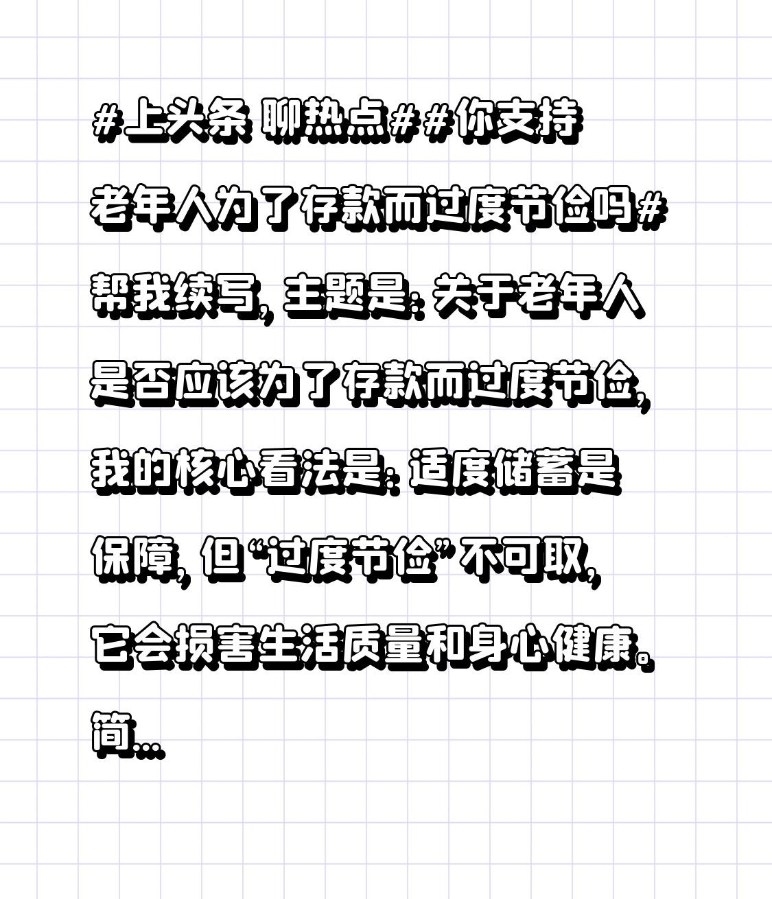 简单来说,关键在于“平衡”——在保障财务安全和享受当下生活之间找到适合个人的均衡点。 许多老人出于对未来的不确定或为子女留财的心理,长期压缩基本开支,舍不得吃、舍不得穿,甚至拒绝必要的医疗和社交支出。这种节俭看似积攒了财富,实则可能换来营养不良、孤独抑郁或病情延误。而另一方面,完全挥霍无度同样不可取,缺乏储备会加剧老年阶段的不安全感。理想的模式应是根据自身经济状况,制定合理的支出计划:该省则省,该花则花。比如,在健康饮食、定期体检、兴趣爱好和家庭团聚上适当投入,不仅能提升生活幸福感,还能减少长期照护成本。节俭的意义不应是苦行僧式的自我剥夺,而是有智慧地管理资源,让晚年既安心又有温度。真正的富足,不只是账户上的数字,更是日常里的笑容与尊严。 总而言之,体面的晚年不仅需要一笔“安全”的存款,更需要一种“安心”的心态。如果过度节俭已经严重影响到生活质量、健康和家庭关系,那么重新审视并调整它,就是对自己和家人真正的负责。