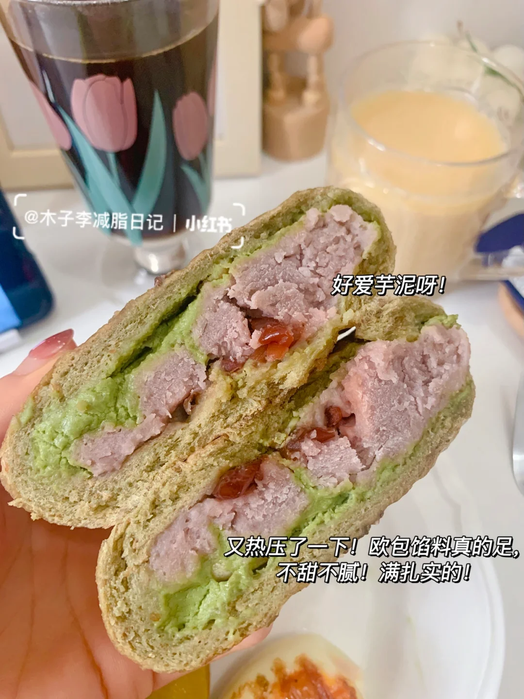 🍳早餐:每日一杯自律豆浆粉➕西蓝花➕千禧果➕鸡蛋➕坚果仁➕黑咖啡➕抹茶芋泥欧包➕奇异果➕黑枸杞原浆
