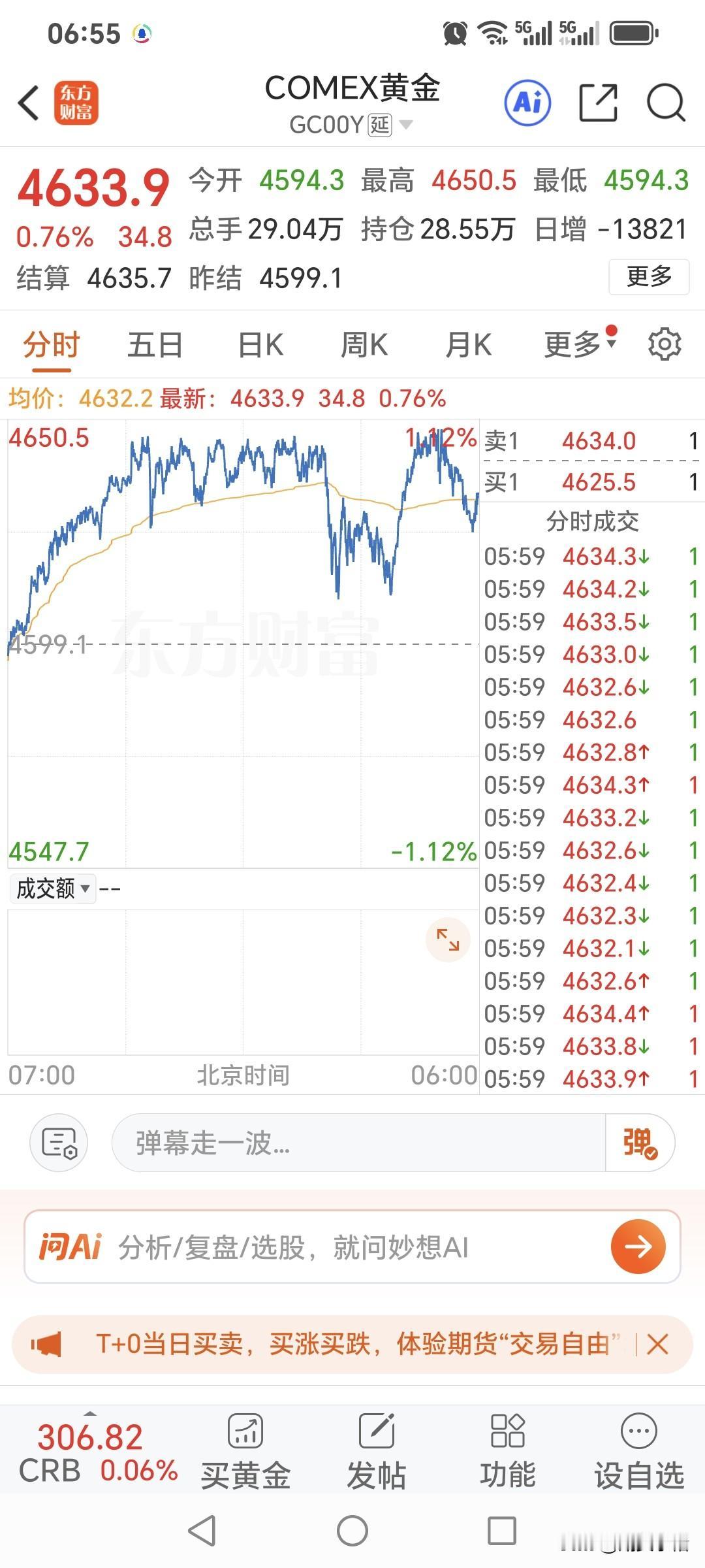 昨日国际金价 继续走强上涨, 盘中再创新高, 一度上攻4650美元。 回顾一下,当日运行情况。 国际金价开盘4594.3美元, 盘中最高升至4650.5美金, 盘中最低价4594.3美元, 最终收盘于4633.9美元, 较上一日上涨34.8美金, 涨幅仅为0.76%。 对于国际金价, 期货小褚建议大家 观望为主比较好!
