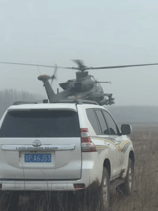 一男子开车在荒野上意外偶遇陆航直升机起降训练? 当他的汽车从国产武装直升机旁边经过的时候。 这画面看起来真是太震憾了!