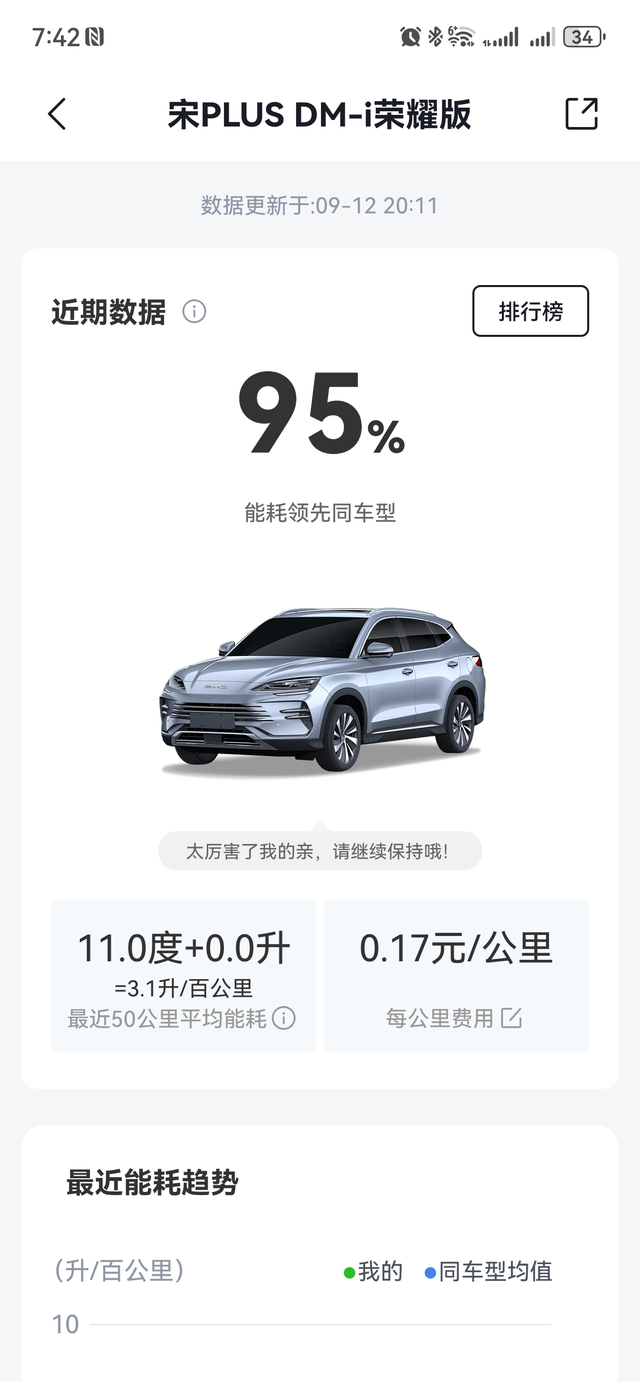 买的宋plus荣耀版 跑了1.8万公里,百公里电耗才11度,走国道,开空调,相当节能了