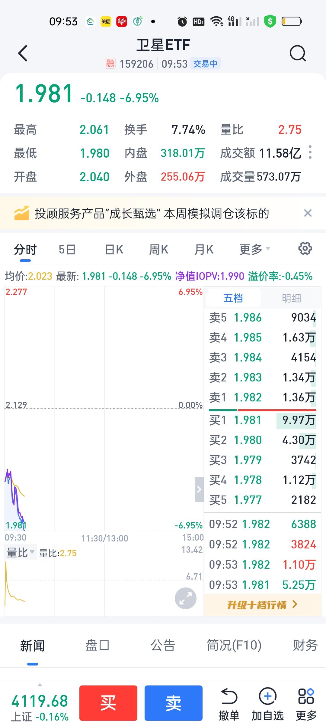 跌了7%这杀的跟厉害啊,我喜欢,昨天的1500股,今天2.030进的2000股,合计3500股,今天亏损400左右。有点意思哈。不过这里肯定不是底。还是那个缺口1.884~1.910,1.884/1.980=0.9515,这个地方距离缺口还有4.85%的跌幅。只能伺机而动,绝不可以满仓。