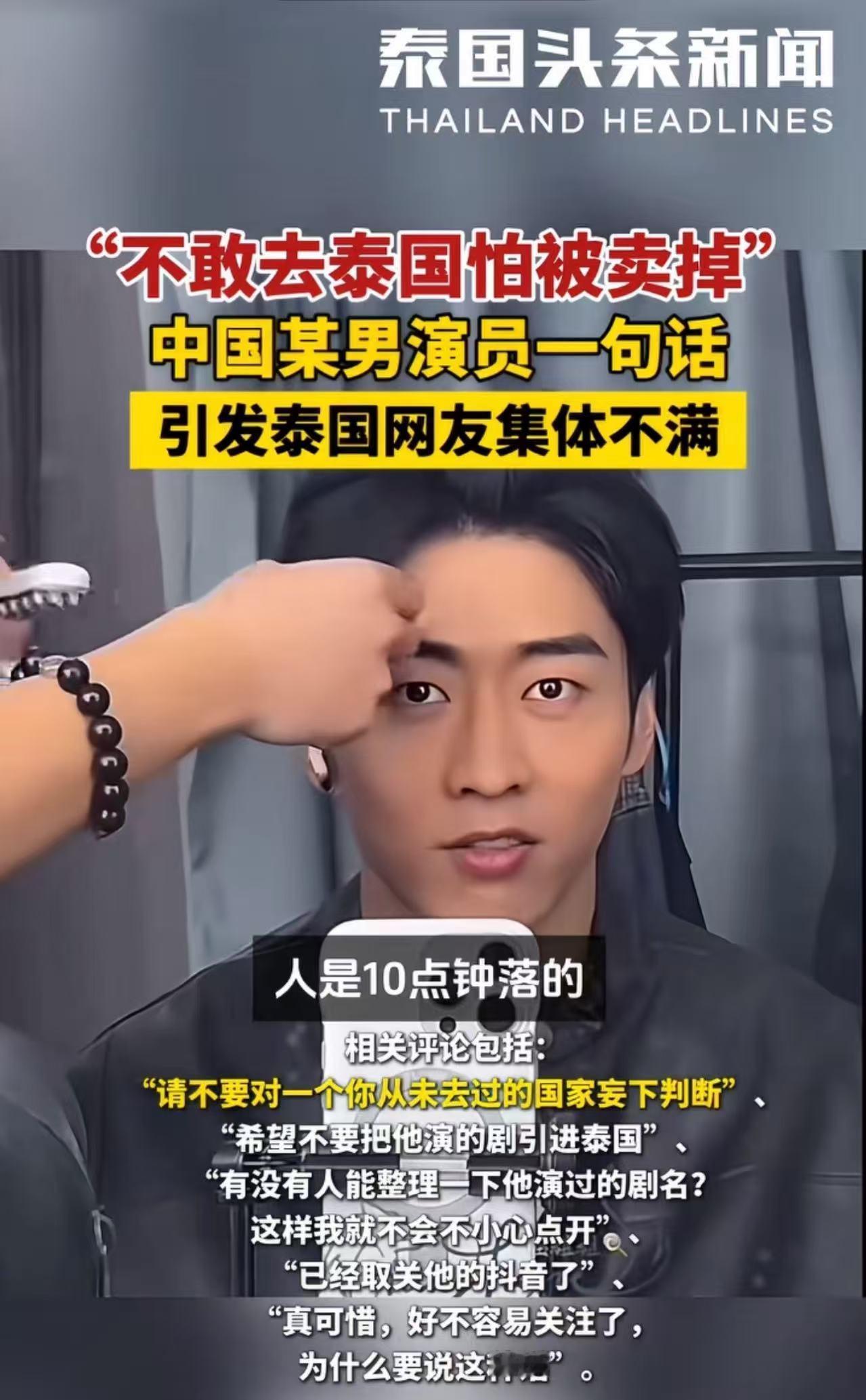 “我不敢去泰国,怕被卖掉!”中国某男演员一句话,引发泰国网友集体不满!泰国网友:“一个公众人物怎么能这么说话呢?这简直就是在砸我们的饭碗,误导别人都不来我们这儿旅游啦!我们泰国其实很安全的,哪像他说的那样!” 一位短剧演员因为自己的安危,在直播中说出了自己的担忧,在国际上引起了轩然大波。这听上去像是笑话,但却是真的。 36岁的曹天恺,从事短剧行业已经有近十年的时间。最近他化妆时开直播,粉丝热情邀请他去泰国玩,他直接拒绝了,理由简单粗暴:"怕被卖在那边,我这种不长脑子的,10点落地10点半就丢了。" 评论区涌入大量愤怒的声音,有人说这是在毁他们的生计,有人要求整理他演过的所有剧集好避开不看。泰网上甚至出现了呼吁:"别再把中国短剧引进来了,我们不需要这种人。" 这反应激烈到什么程度?当地从业者直接把话挑明了——旅游业是吃饭的家伙,公众人物这么说话,等于在掀桌子。泰国现在正靠这口饭维持经济,每一个游客的犹豫都是真金白银的损失。 但是,从国内的反应来看,这件事并没有这么简单。 有人直接说"我也不敢去",有人提起身边真实发生的事——两个女生落地后坐出租车,直接被拉到缅甸,家里花了70万才赎回来。 70万不是个小数目,对普通家庭来说可能是几年积蓄。一旦有了这样的消息,那恐慌的情绪,就会以一种恐怖的速度传播开来。古话说的"君子不立危墙之下",现在被套用在了那片区域上。 这种恐惧有根据吗?从数据层面看,绝大部分游客的旅程都是安全的,但问题在于那些极端案例的传播速度远超正面信息。王星事件留下的阴影至今未散,关于东南亚的各种传闻在社交媒体上持续发酵。 泰国人看到的是本国治安数据和正常运转的旅游体系,而中国游客看到的是那些被广泛传播的风险案例。两人身处两个世界,完全无法交流。 曹天恺的话之所以能点燃这场风波,是因为他把私下的顾虑公开化了。 泰国急需游客回流来盘活经济,任何负面声音都是在断财路,而潜在游客捂紧钱包的同时更捂紧人身安全,这种防御姿态短期内很难松动。 两边都有自己的账本。泰国算的是生存账,中国游客算的是生命账,这两本账没法放在一起比较轻重。 更深层的矛盾在于,在全球化时代,安全感已经成为最硬的流通货币。当人们开始计算"落地消失"的概率时,再精美的旅游宣传片都会显得苍白。信任这种东西一旦崩盘,重建成本极高,不是靠几个官方声明或者网红打卡就能修复的。 曹天恺可能只是说了句大实话,顺便表达了对国内旅游资源的偏好。但这句话造成的隐形损失,会在很长时间内持续发酵。那些因此止步的游客,那些因游客止步而失去收入的从业者,都在为这场信任危机买单。 在这个流量经济的棋局里,一句话的破坏力有时候比想象中更大。这不仅触及到了情感,更触及了双方最核心的利害关系。这笔账,恐怕还会算很久。