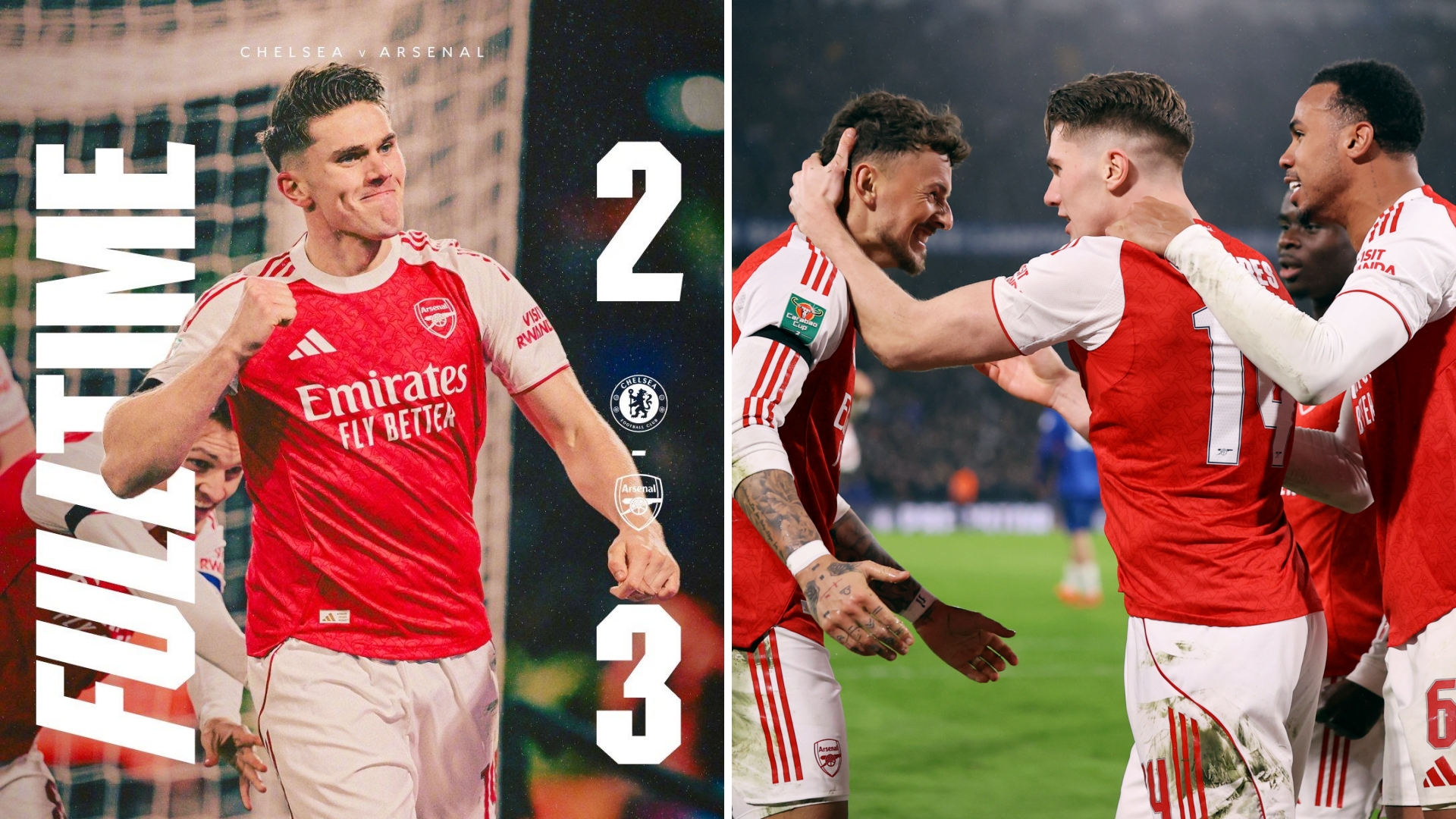联赛杯:阿森纳客场3-2击败切尔西,首回合占据先机。 本怀特头槌破门,约克雷斯传射建功,苏维门迪进球,加纳乔双响。