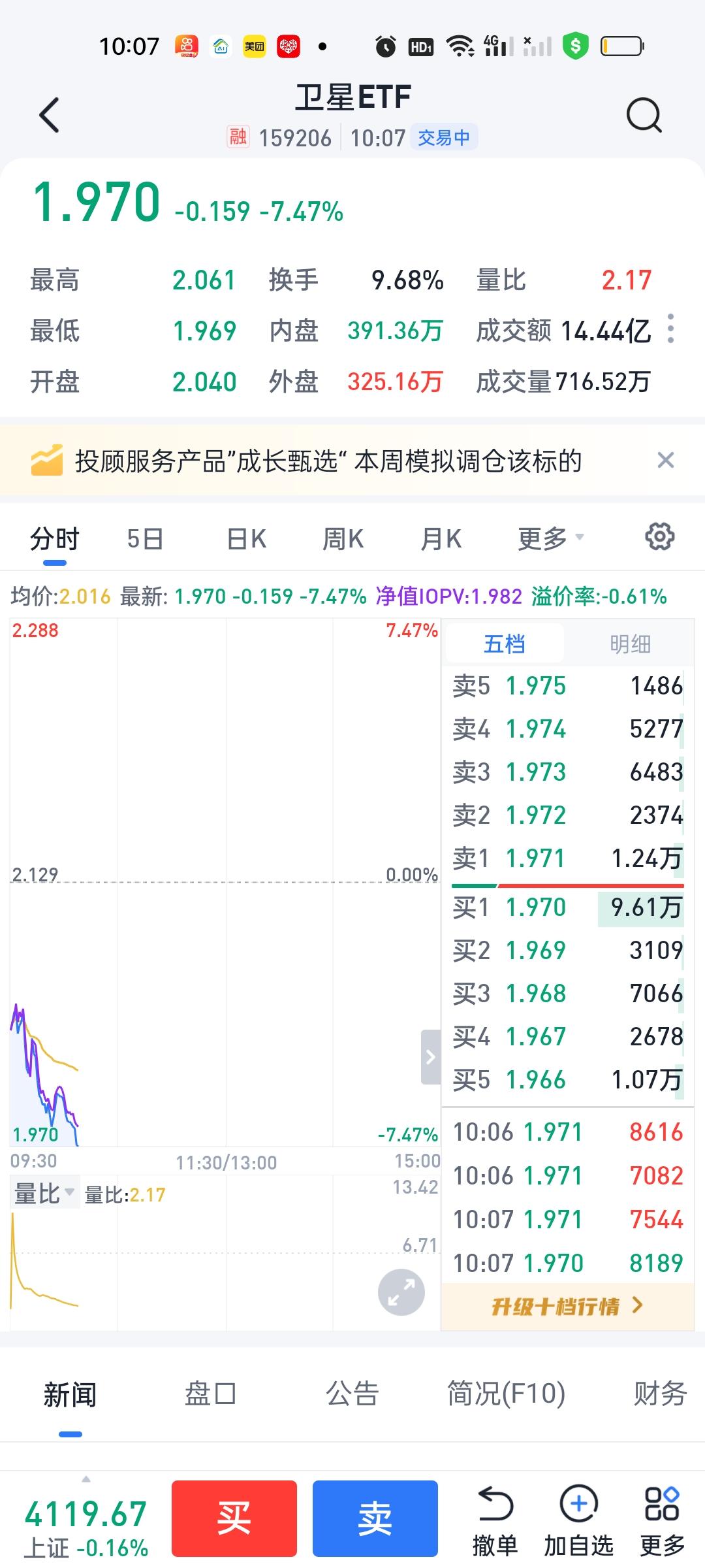这是要冲着跌停去了,简直不要太爽了。我最喜欢的就是这种感觉,原因很简单最低点已经来到1.968了,距离1.884的缺口越来越近了,今天跌停价1.916,1.884/1.916=0.9833,只差1.67%,明天就能到位。1.884/1.968=0.9573,也只差4.27%。再忍一忍就要来迎来曙光了!