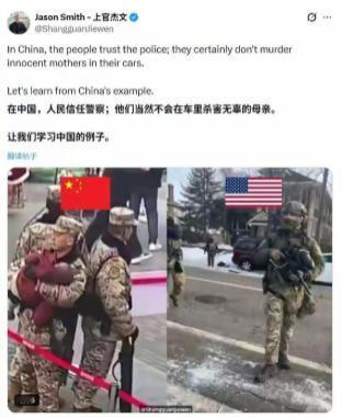刷到美国警察街头开枪的视频,评论区都炸了,老外网民这回是真破防了,怎么同样的街头场景,中国警察就能蹲路边帮大爷修三轮车、劝吵架夫妻“先喝口水消消气”。 说真的,你仔细分析的话会觉得挺有意思的,看西方那些执法视频,动不动就掏枪对峙,紧张得跟拍动作片,反观咱们片警,日常任务清单里可能包括“帮迷路小孩找妈”“劝跳广场舞大妈调低音量”。 不是吹,像这种“服务型执法”其实更考验水平,毕竟处理邻里矛盾可比瞄准难多了,得懂心理学还得有耐心。 去年有个热搜,俩摊贩抢地盘快打起来了,警察来了先各递一瓶矿泉水,吵累了吧?喝完再吵,围观群众都乐了,架自然也吵不下去了,这种“去火药式执法”背后,其实是中国基层治理的逻辑,少点对抗,多点沟通,社会稳定成本才最低。