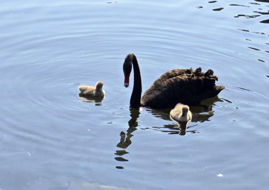 在朋友圈里看到的黑天鹅和丑小鸭,原来黑天鹅的小宝宝不是黑色的,照片经过美颜后就更