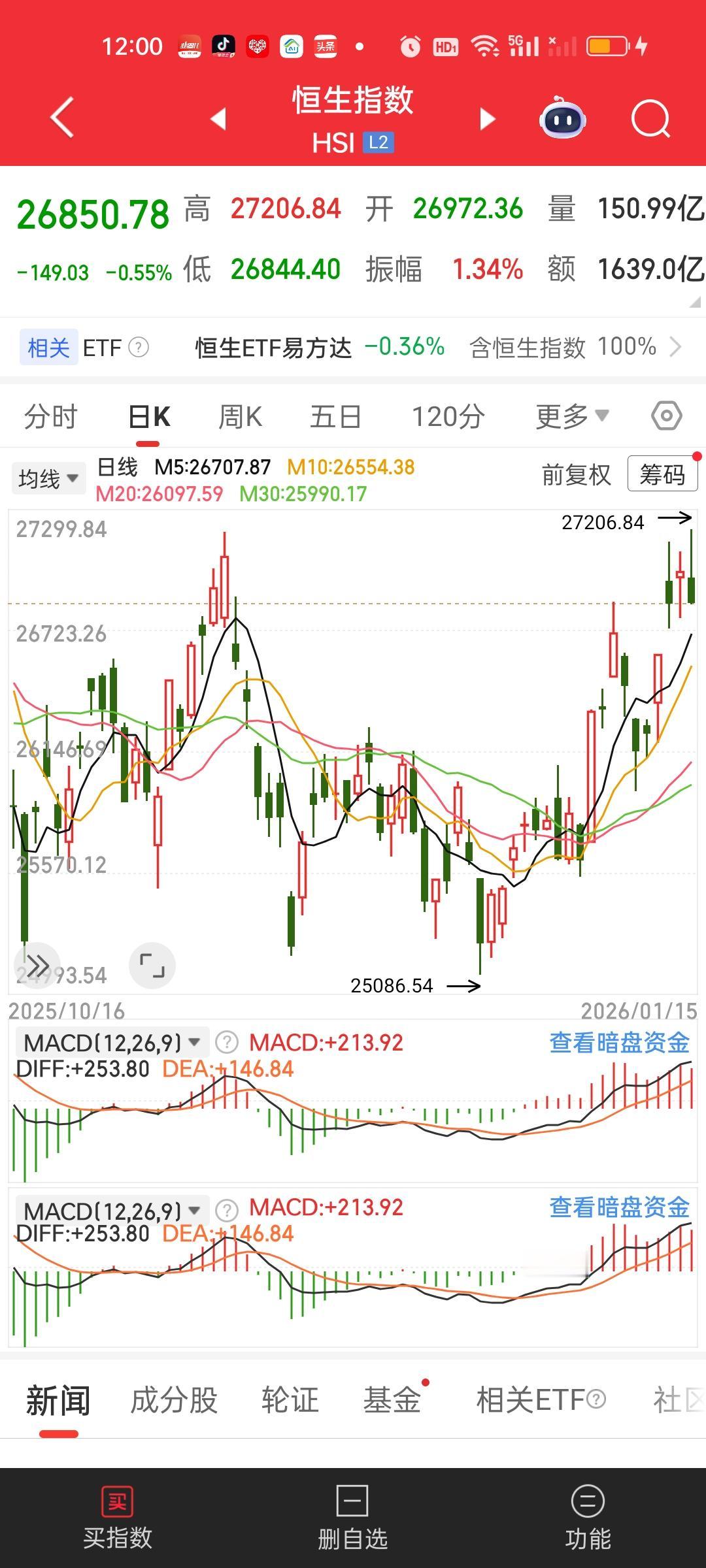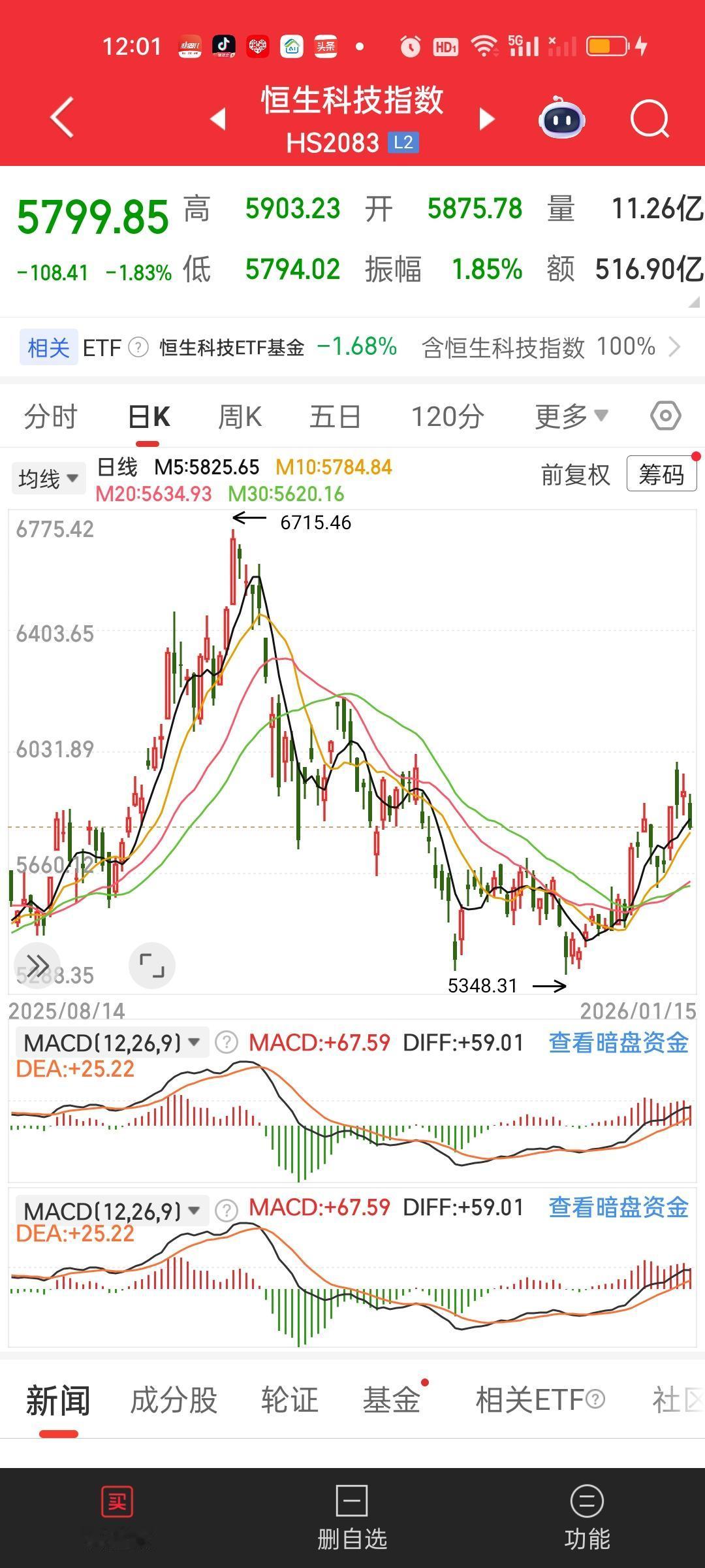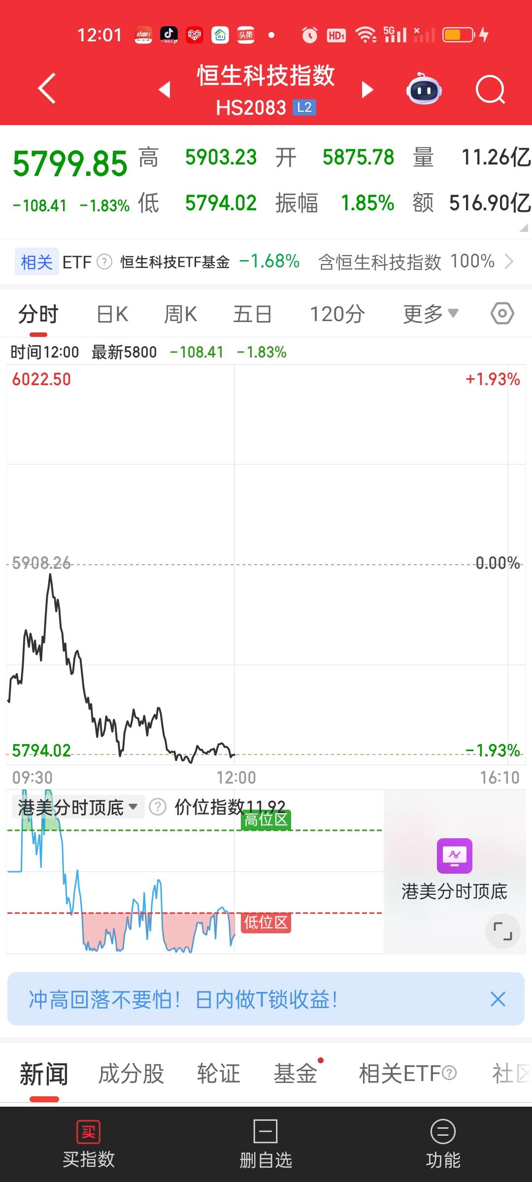 港股中午收盘了,恒指冲高回落破了前高但下杀的比较多,目前依旧站稳所有均线的上方,恒科今天跌破了5日线,但依旧站在其它均线上方。恒科仓位低的可以加点仓位,其它也没啥好说的。