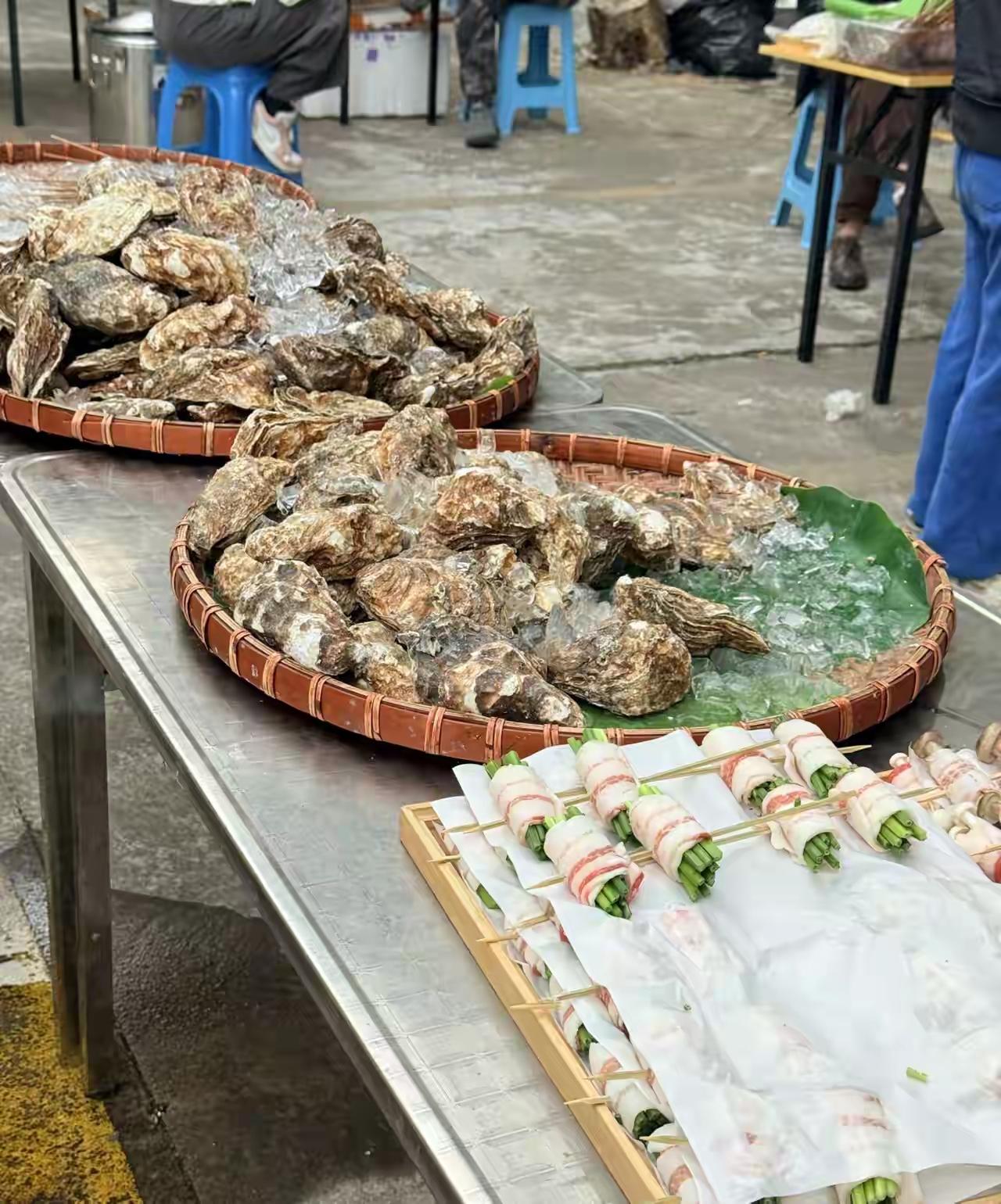 邓超真是大气,请全剧组的人吃烧烤了,看着人还不少! 从照片中可以看到,准备的烧烤食材非常丰盛,荤素搭配,有海鲜,白菜,鸡翅,玉米,生蚝等,非常丰富!这下剧组的人有口福了!