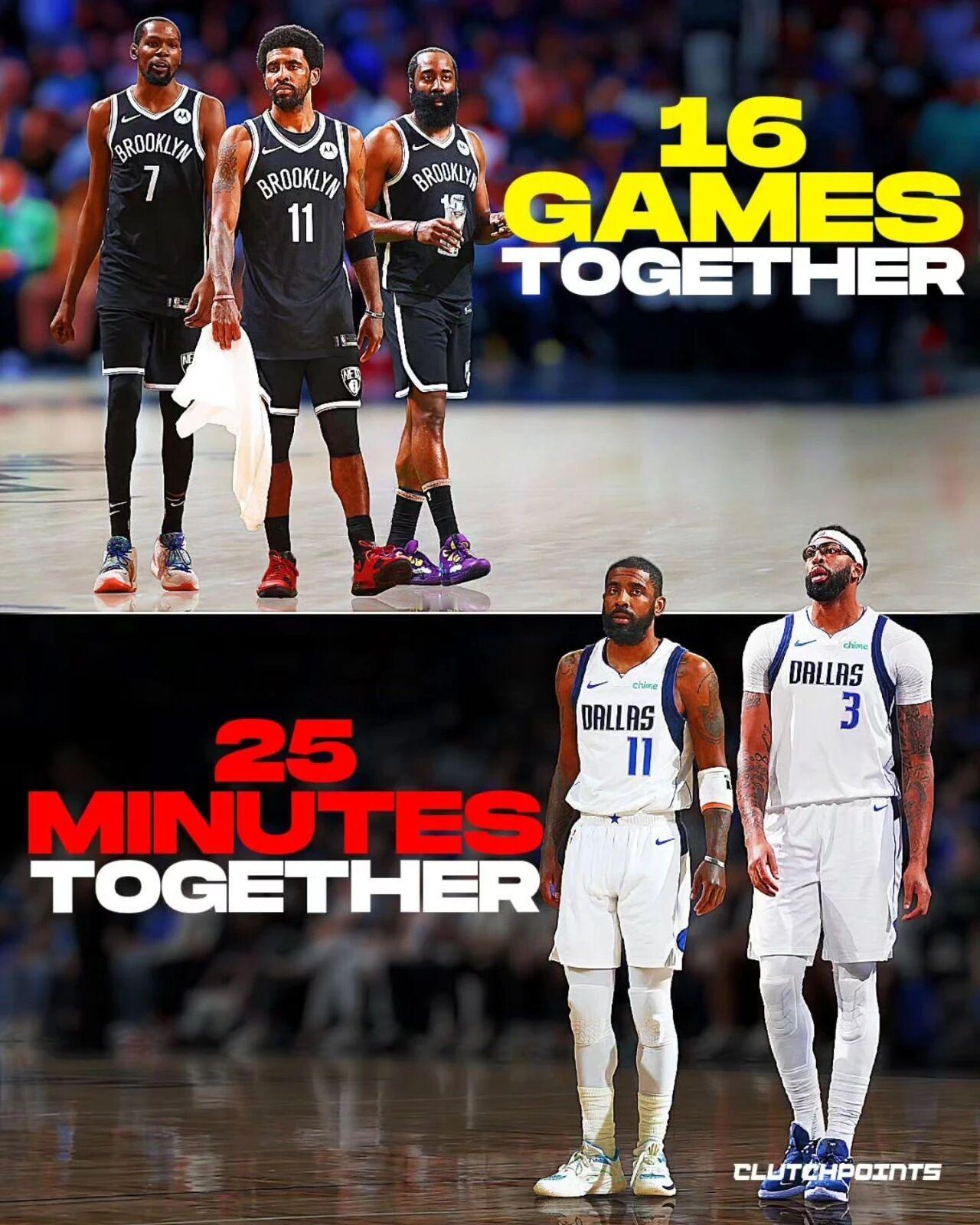 自从浓眉被交易到独行侠以来,他和欧文同时在场的时间只有25分钟!因为浓眉刚被交易过去就受伤,欧文后来又遭遇十字韧带撕裂,所以两人实际上只同时打了一场比赛! 2025年2月9日,独行侠116-105火箭!那场浓眉得到了26分16篮板7助攻3盖帽!欧文则得到13分2篮板6助攻2抢断2盖帽! 传言独行侠正在兜售浓眉,而且欧文可能赛季报销…如果浓眉复出之前就被交易的话,那这两位状元一共只联手打了一场!这,有点篮网三巨头的味道了…