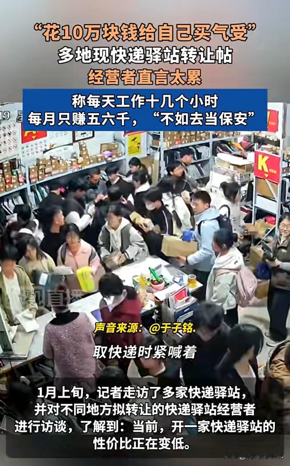 这么不赚钱的吗?那确实没搞头,有的甚至还不如去打工。 近期,很多人转让快递驿站。 原来是越来越没搞头了,一天干十几个小时,有时候工资才五六千。 那这个情况,确实没什么搞头啊。 心又累,还要服务这么多人,看这么多人的脸色,工资又不像个老板的工资,像打工的工资。 怪不得转让了。曝多地快递驿站转让