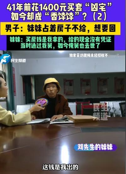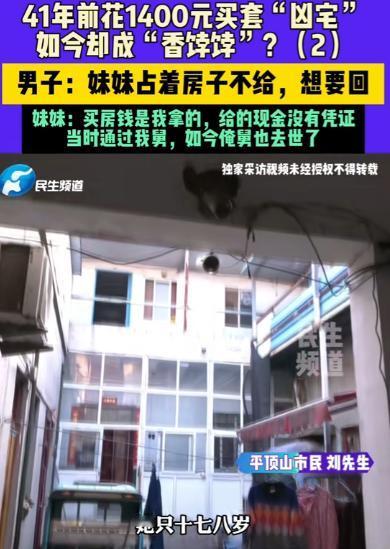 “解释不清了!”河南一男子,42年前花1400元买了一套“凶宅”,之后就一直把房子给母亲和妹妹住,而这一住就是几十年,如今,男子想收回房子,妹妹却一点也没有要还的意思,最终,兄妹为了房产的事闹上法庭。 河南,64 岁的刘建国(化名)站在院门外,双手插在褪色的棉袄口袋里,望着那扇斑驳的朱漆木门,憋了半天才冲着里面喊:“小梅,这房子,我今天必须要个说法。” 门吱呀一声被推开,比他小六岁的妹妹刘梅(化名)叉着腰站在门槛上,嗓门亮得能传到村头:“哥,你还好意思要说法?这房子我跟咱娘住了四十多年,你现在回来要收走,良心过得去吗?” 事情得从42年前说起,当时22岁的刘建国在邻县的木工队干活,一天挣一块八毛五,一个月刨去吃喝能落五十多块,这在当年绝对是响当当的高收入。 那年冬天,村里一户人家要搬走,打算卖掉家里的砖瓦房,可没人愿意接手 —— 这房子是出了名的 “凶宅”,前房主的儿子几年前在屋里上吊自杀了。 在农村的民俗里,这样的房子被认为阴气重,入住会招来灾祸,就算价格再低,大家也避之不及。“当时房主急着用钱,把价格压到了 1400 块,可村里没人敢买。” 刘建国回忆,他当时在外打工,听舅舅说这事,心里动了念头。 刘建国说,他当时想着母亲和妹妹还挤在茅草屋里,逢年过节下雨,屋里到处漏雨,盆盆罐罐都得用来接水,土墙都泡得发潮。 “就算是凶宅,至少能遮风挡雨,总比茅草屋强。” 他咬咬牙,把三年攒下的积蓄都拿了出来,托舅舅帮忙办手续。 “我当时赶工期走不开,就把钱亲手交给舅舅,让他跟房主对接,房产证上写的是我的名字。” 房子买下来后,刘建国没打算自己住,直接让母亲和刚满16岁的妹妹搬了进去。 按照村里的规矩,入住 “凶宅” 要举行简单的镇邪仪式,妹妹刘梅杀了一只鸡,把鸡血洒在院子里,又贴了红对联,才算正式住了进去。 一开始,街坊邻居还指指点点,可时间久了,见母子俩住得安稳,也就没人再提 “凶宅” 的事。 刘建国继续在外打工,一年也就回来一两趟,每次都住在妹妹家。 母亲在世时,总念叨着儿子孝顺,给她买了安稳的住处,刘梅也常跟哥哥说,会好好照顾母亲,守好这个家。 那些年,兄妹关系一直很好,刘建国在外遇到难处,妹妹会把省吃俭用的钱寄给他,刘梅家里有事,刘建国也会第一时间赶回来帮忙。 这一住就是几十年,茅草屋渐渐从村里消失,家家户户都盖起了新楼房,可这套老砖瓦房依然矗立在村中央。 母亲在 2010 年去世后,刘梅一家继续住在里面,期间还自己出钱换了屋顶的瓦,砌了院墙,给窗户装了玻璃。 刘建国依然在外打拼,偶尔回来探望,也从没提过要收回房子。 变化发生在 2023 年,刘建国年纪大了,身体不如从前,不想再在外漂泊,打算回老家养老,这才跟妹妹提了收回房子的事。让他没想到的是,妹妹一口拒绝了。 “哥,这房子不能给你,当年买房的 1400 块是我出的。” 刘梅的话让刘建国愣住了。 刘梅说,当年哥哥根本没能力拿出1400块,是她攒了两年的钱,又跟亲戚借了些,才凑够了钱。 “我当时年纪小,不懂怎么买房,就把现金交给舅舅,让他帮忙办手续。” 刘梅说,舅舅当时说都是一家人,不用写凭证,她也没多想。可让她没料到的是,舅舅在 2015 年去世了,现在没人能证明钱是她出的。 “你这是胡说八道!” 刘建国气得浑身发抖,他拿出当年的房产证,上面明明白白写着他的名字。 “你当时才十几岁怎么可能有这么多钱?房产证在我这,房子就是我的,你怎么能睁着眼睛说瞎话?” 可刘梅不认可,她觉得房产证是舅舅帮忙办的,当时哥哥在外,舅舅可能随手写了哥哥的名字,不能算数。 为了这事,兄妹俩吵了无数次,亲戚们也来调解过。村委会也试着调解,但都无济于事。 调解无果后,刘建国在2024年初把妹妹告上了法庭。 法庭上,双方各执一词,争执不下。刘建国提交了房产证作为证据,证明房屋登记在自己名下,刘梅则申请了几个老邻居作证,证明她一直住在这套房子里,并且多次修缮。 法官表示,农村房屋权属纠纷中,举证难是常见问题,很多交易都是口头约定,缺乏书面凭证,一旦出现争议,很难查清事实。 尤其是几十年前的交易,当事人记忆模糊,中间人去世,更是增加了审理难度。法院会结合房屋登记情况、居住使用情况以及双方的陈述,综合作出判断。 这破碎的兄妹情,恐怕也很难再回到从前了,那1400块钱买的不仅是一套房子,更是一段跨越几十年的恩怨纠葛,只是如今,再想理清当年的是非对错,已经没那么容易了。 对于这件事,您有什么想说的吗?欢迎评论区留言讨论。 信源:河南广播电视台民生频道2025-12-25——《12月25日(发布)河南平顶山,41年前花1400元买套"凶宅",如今却成"香饽饽"?》