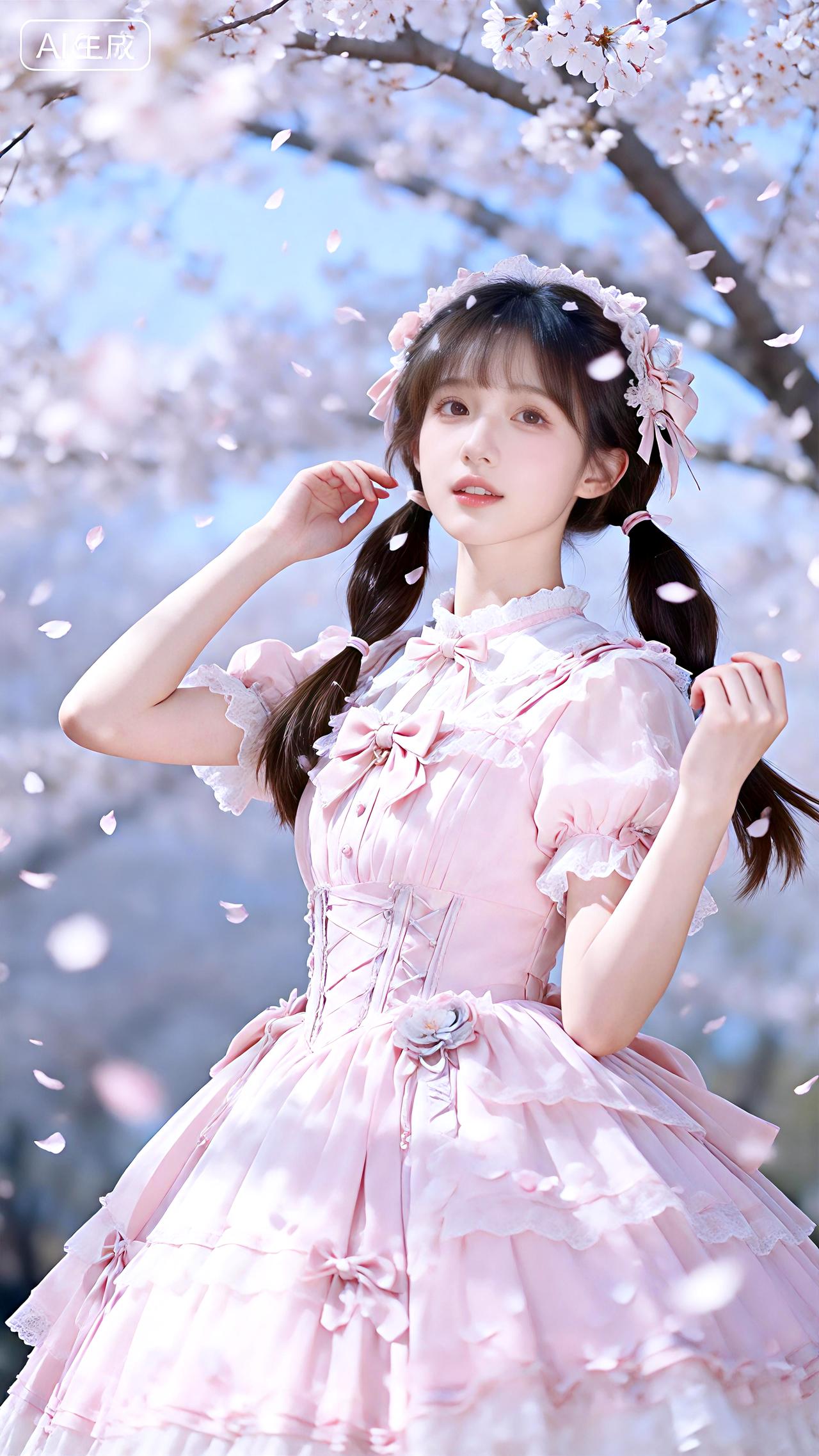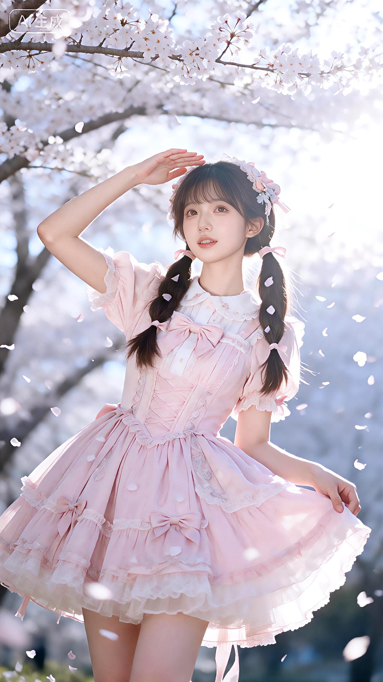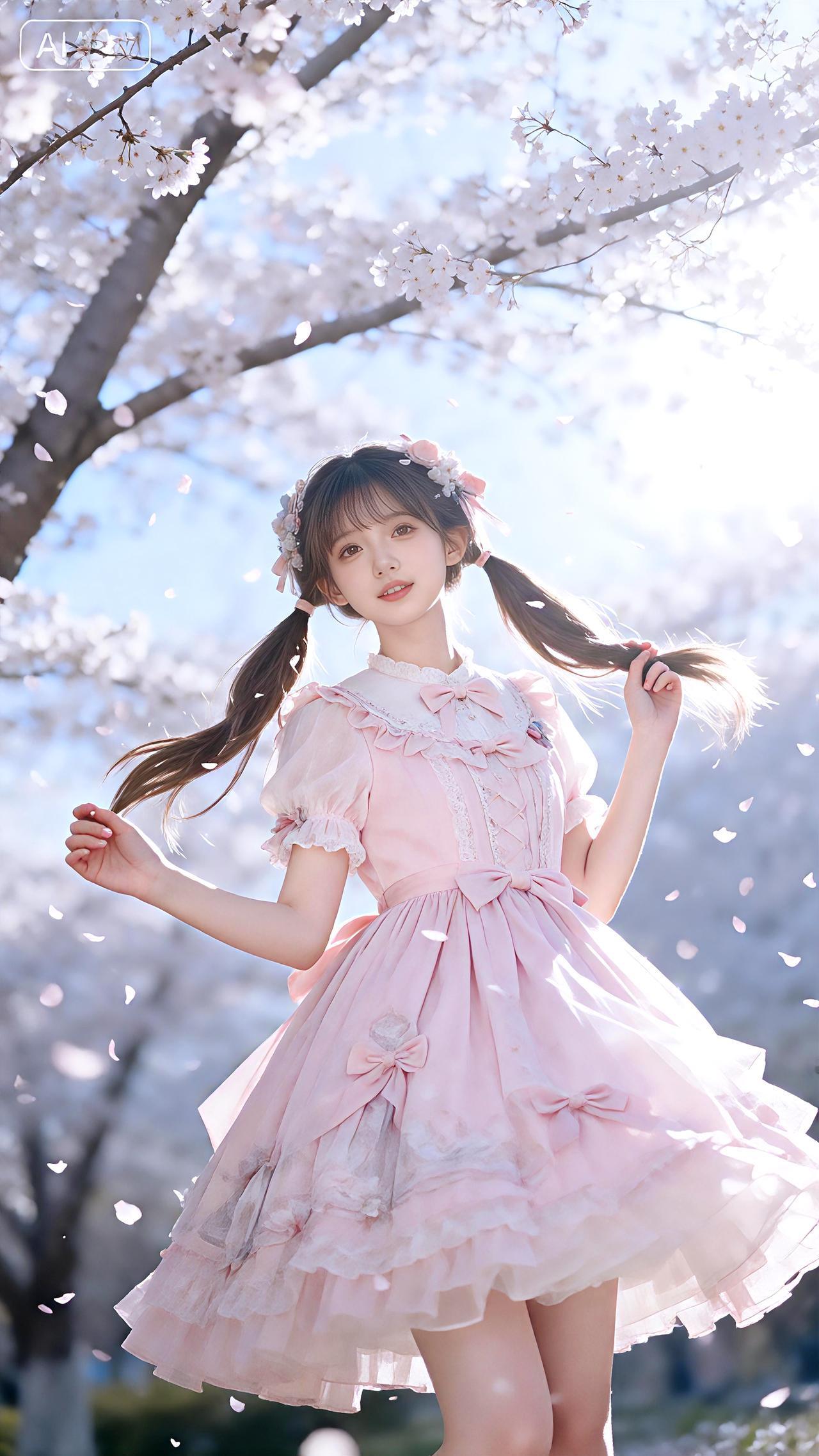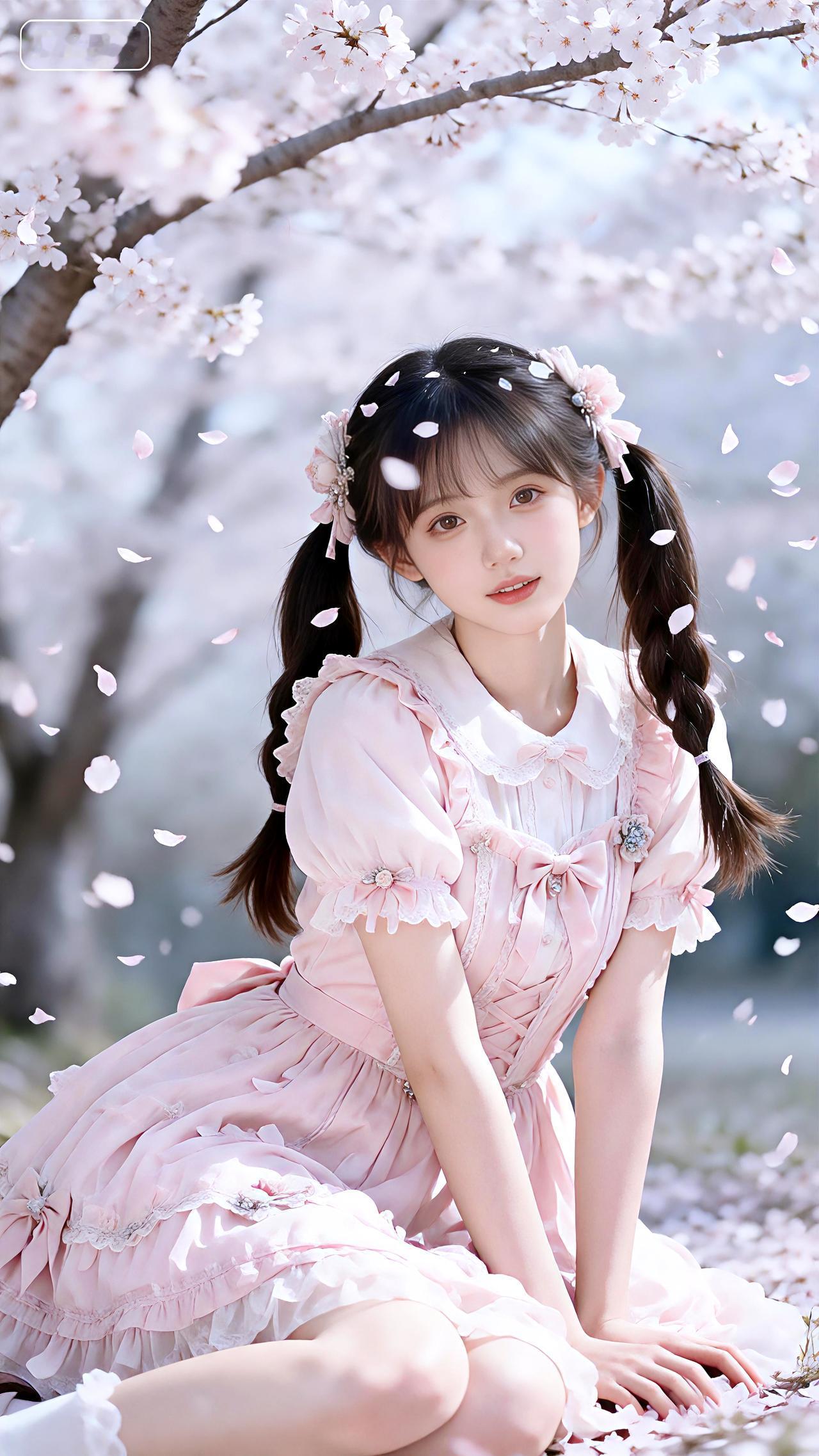樱吹雪舞笑回眸,粉裙双马尾温柔。 壁纸豆包高清
