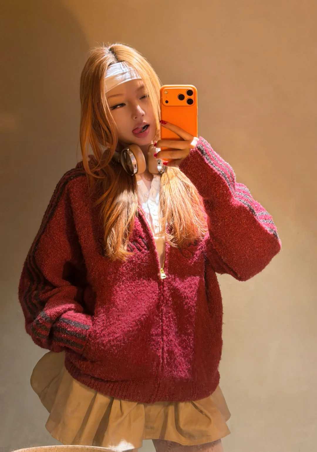 每到年末就想跟🟥锁死🔒 过年仪式感也绝不能落下 美甲美发都安排上了hhh 头发染了亮眼橘色🌟hin出片 红色波点杏仁美甲超有猫感💅🏻 2026一定一马当先🐴