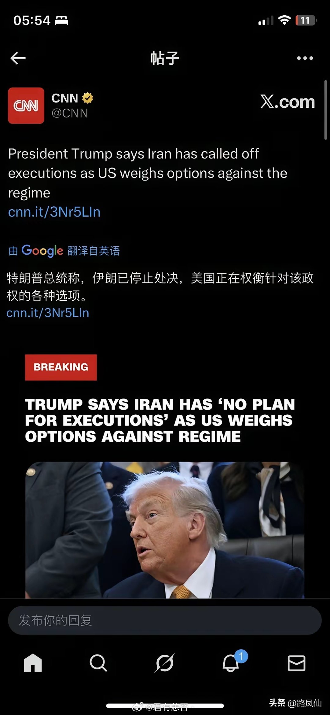 伊朗已经通知美国,停止在于今日开始的所有死刑执行,以避免美国的军事打击。