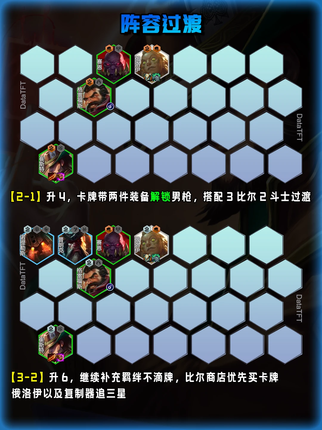 ✅2-1升4级:卡牌带两件装备解锁男枪,搭配3比尔2斗士过渡,前期稳血超轻松