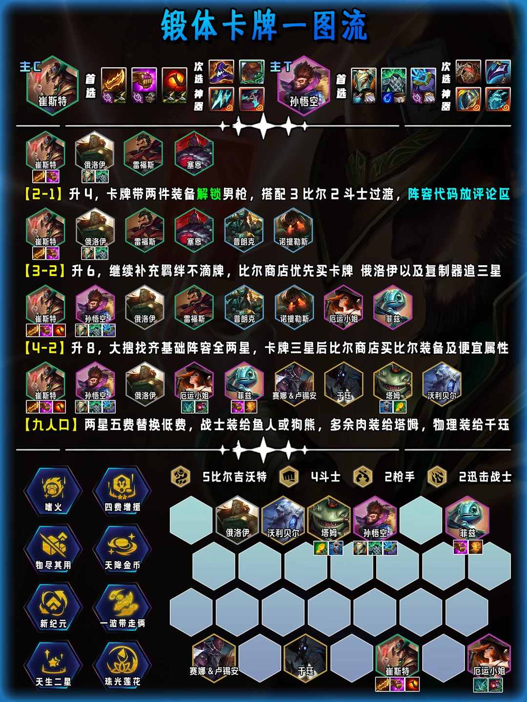 家人们!云顶锻体卡牌的保姆级攻略来了,一图流直接抄作业,学会这套思路轻松上大分~