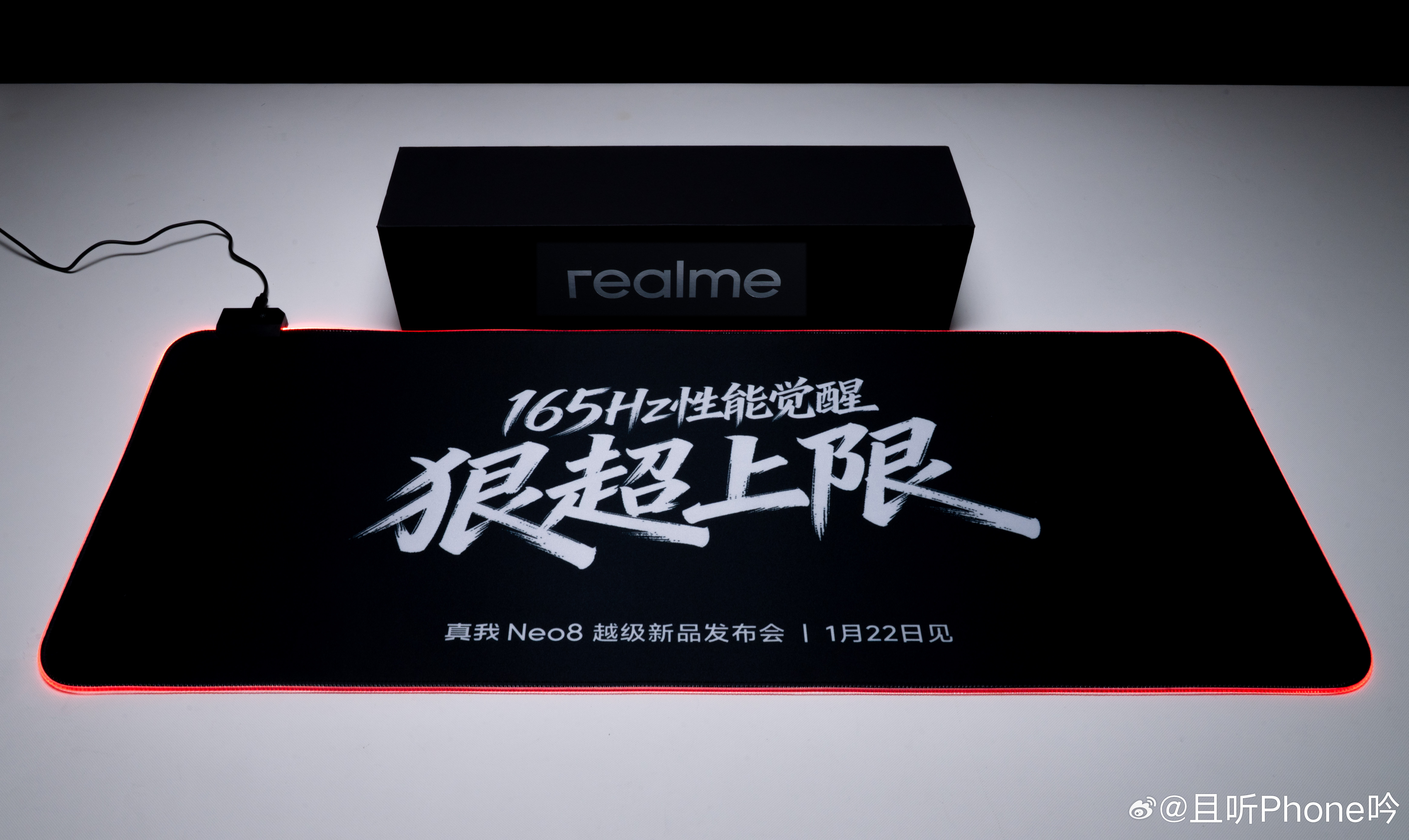 收到真我Neo8发布会邀请函一张发光鼠标垫,写着165Hz狠超上限,看来会主打性能和RGB,1月22号发布会见!
