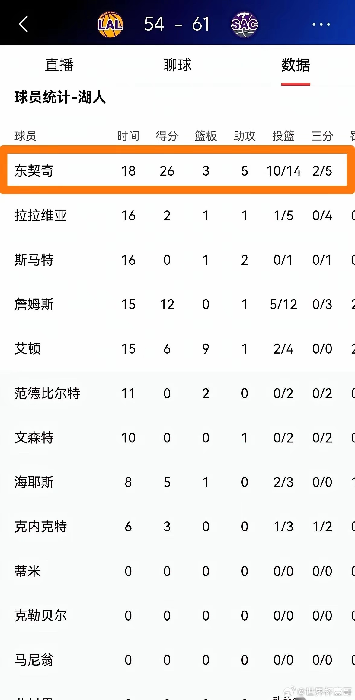 总有人批评东契奇是数据刷子,打球太独,我差点就信了。今天对阵国王,半场他14次投篮砍下26分。镜头切换,他的队友们状态低迷,投篮频频打铁。整个进攻时段,几乎只见他一人,或强突两人上篮,或迎着防守投三分。好不容易造犯规站上罚球线,他喘着粗气,瞥了眼计分板,54比61,球队仍落后。最打脸的是,半场球队输7分,但东契奇在场的18分钟里,球队净胜2分。这个“正负值”,比任何辩解都有力。数据不会说谎,他不是在刷分,而是用一己之力弥补队友的不足。以前认为他是球队上限,今天才明白,他是在扛着球队下限。nba湖人东契奇