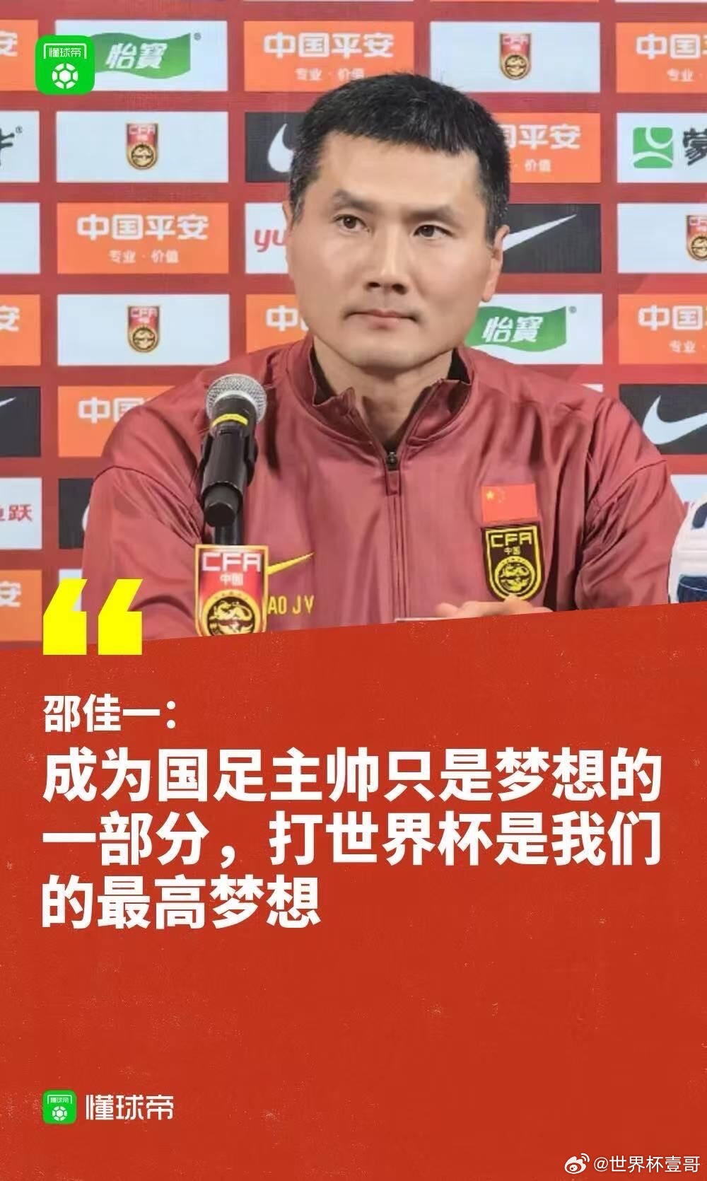 国足主帅邵佳一发表上任感言:梦想冲击世界杯,希望大家给予国足更多支持和包容足球国足