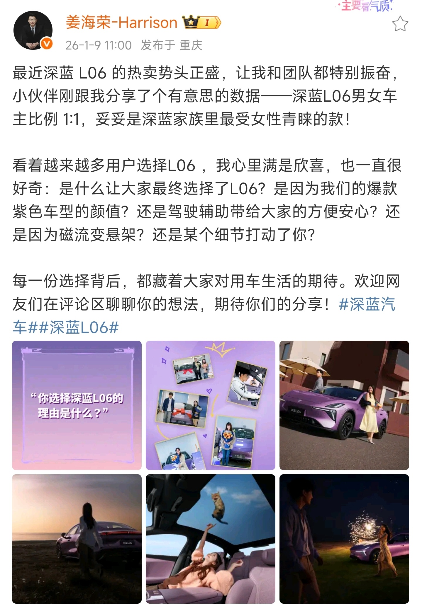 看到深蓝汽车CEO在微博跟广大用户畅聊选择深蓝L06的心路历程,连品牌大使刘浩存都来互动了,我也来分享一些我的感受,科技的意义,不止于领跑,更在于陪伴。在看到L06配置的时候,最打动的我的就是深蓝L06全系搭载宁德时代电芯与金钟罩电池。它用顶尖的硬件与安心的承诺,化解的正是人们对于出行最具体的不安。这份把焦虑留给标准,把安心留给每一次出行的体验,或许就是深蓝L06最动人的地方——让每一次出发,都从忐忑牵挂变成从容笃定。刘浩存最萌的脸开最猛的车