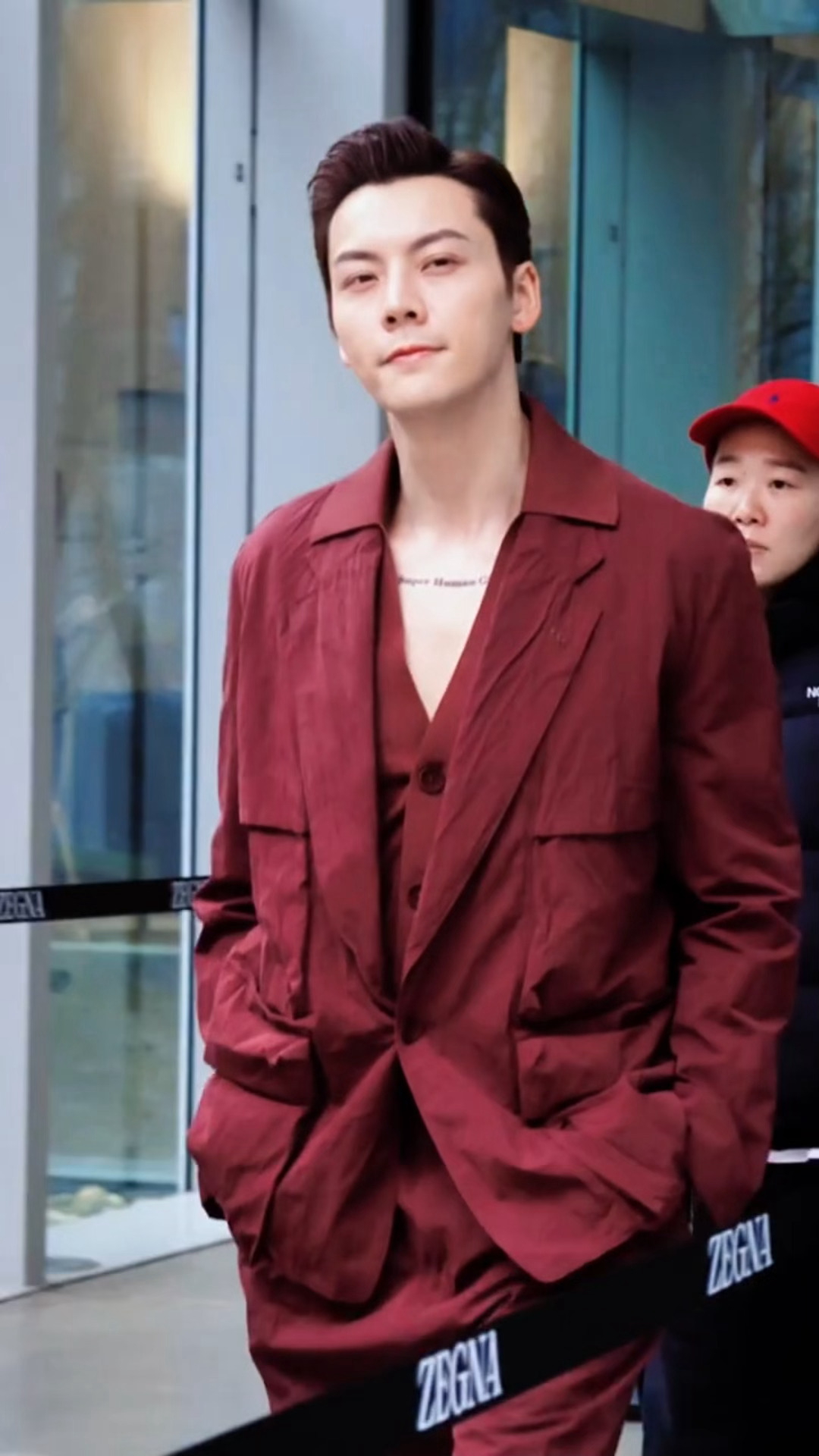 王鹤棣LV活动嘉宾 好有电影感的一幕!!真帅成神了啊这个粉色王鹤棣!!!我愿意和