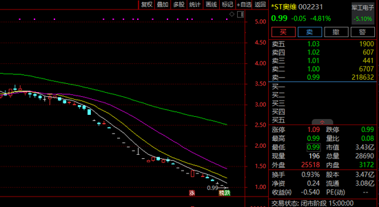 002231,或被强制退市!股价跌破1元!