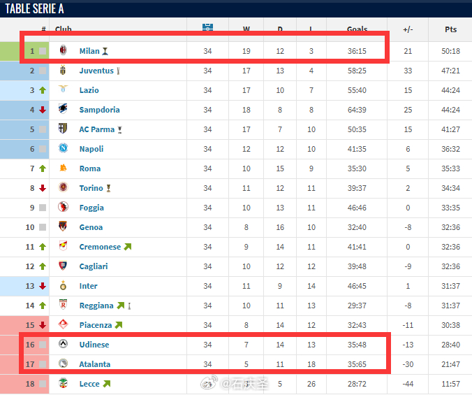 【小故事】你知道吗?1993/94 赛季,AC 米兰整季仅打入 36 球便夺得意甲冠军。而打入 35 球的亚特兰大和乌迪内斯,却双双降级。大圣聊球 大圣聊球 意甲 意甲 AC米兰 AC米兰