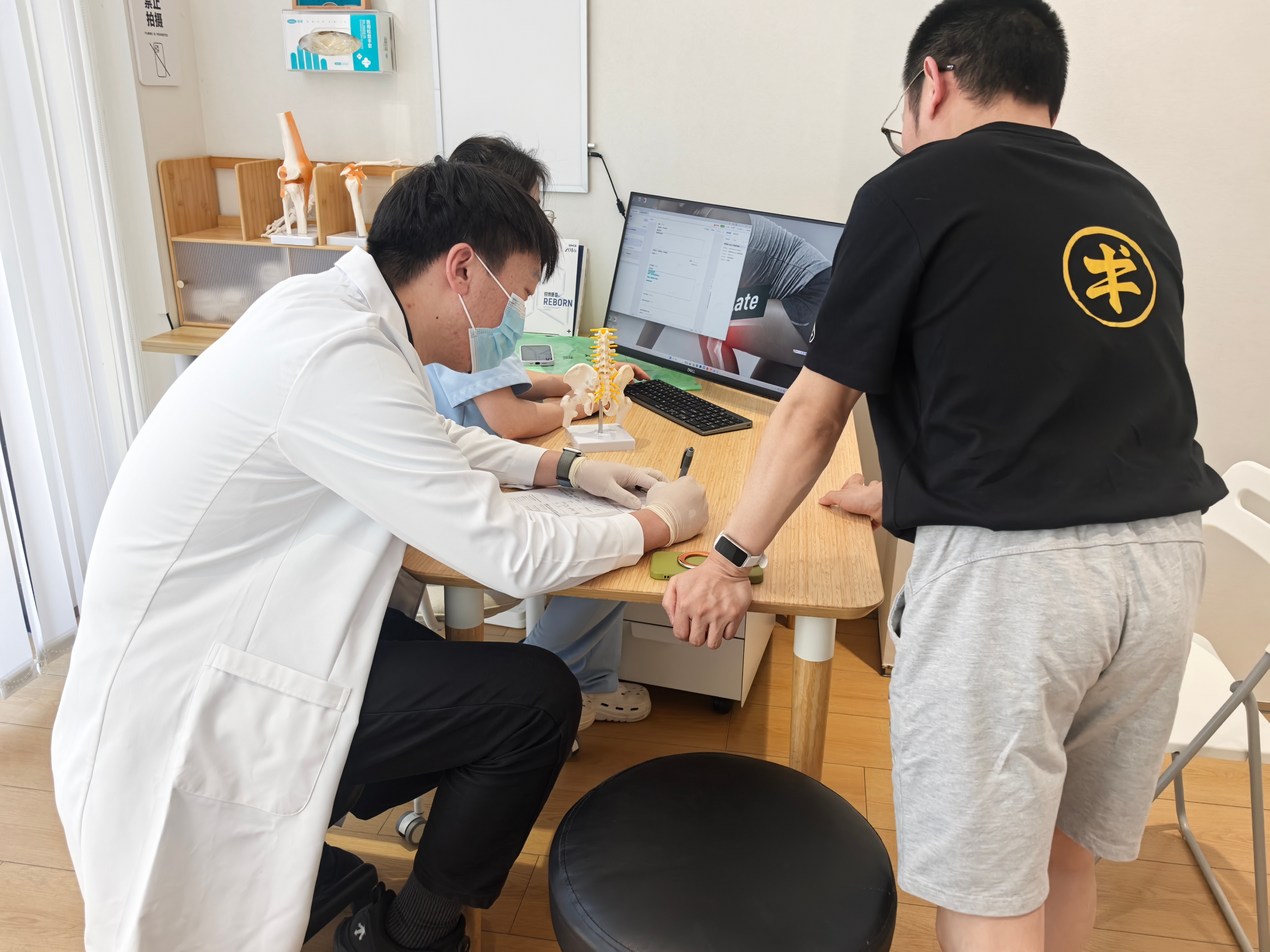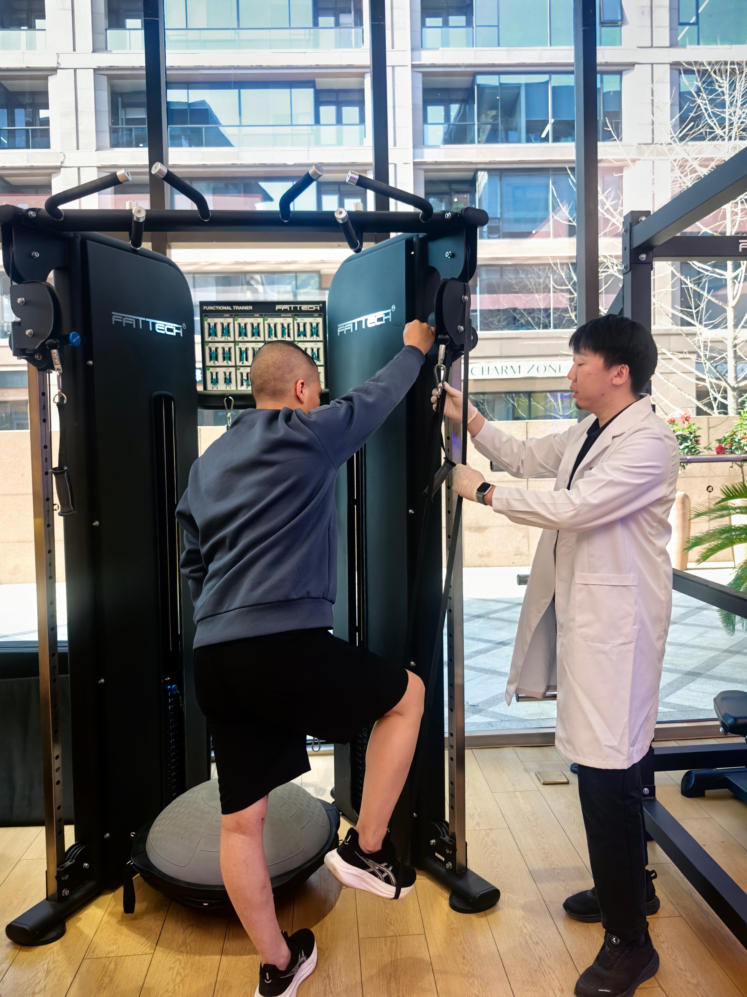 北京奥森店的康复技术探讨中,赵老师带我们的运营同事做训练所以,在康复中心上班的好