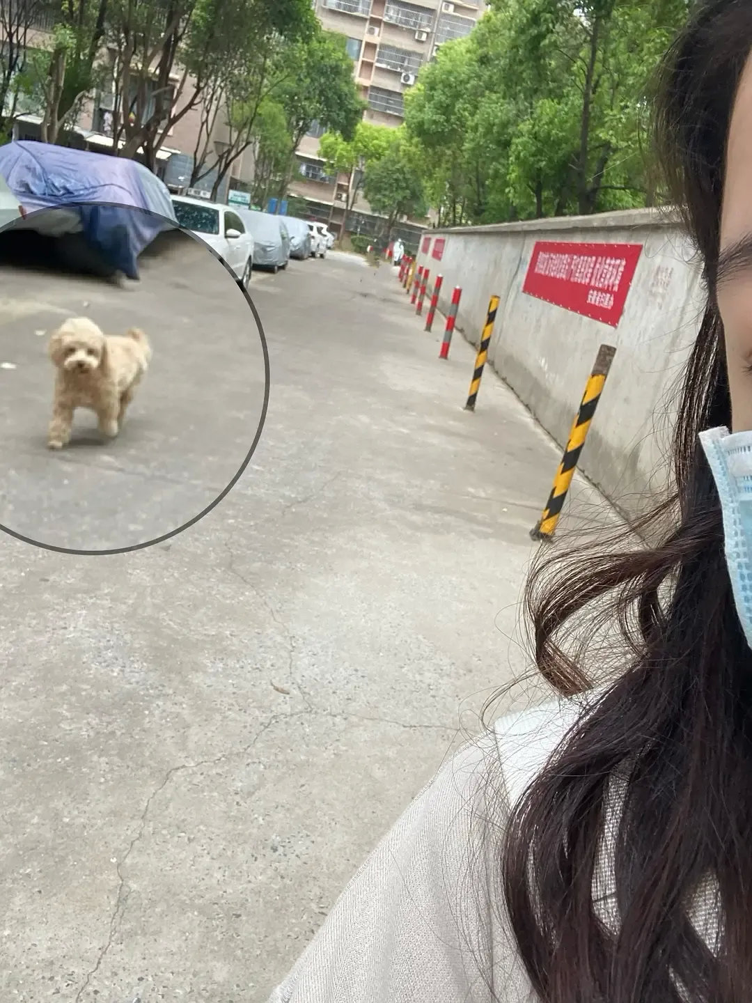 网友回家路上遇见了一只小狗狗,一直偷偷摸摸跟着我,它是不是喜欢我,嘻嘻!